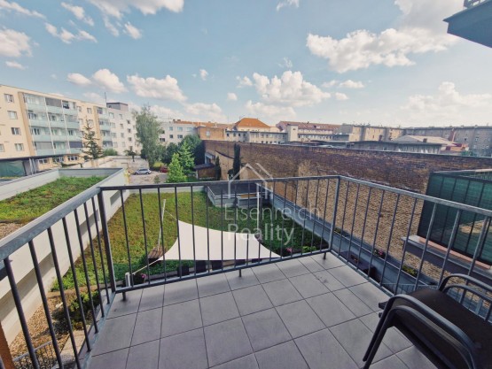 Nabízíme k pronájmu moderní byt o dispozici 2+kk v centru Hradce Králové. Byt má podlahovou plochu 45m2, včetně šatny + komora na patře o výměře 1, 2m2 a ...dále dva balkony každý o výměře 5m2. Byt je nabízen do pronájmu částečně zařízen - kuchyně včetně spotřebičů, v ložnici dvě vestavěné skříně, gauč, jídelní stůl se židlemi. Byt se nachází ve 2. patře včetně výtahu. K bytu je možné si pronajmout parkovací stání v parkovacím domě Katschnerka za 2. 400 Kč/rok. Byt je ihned volný k nastěhování.
