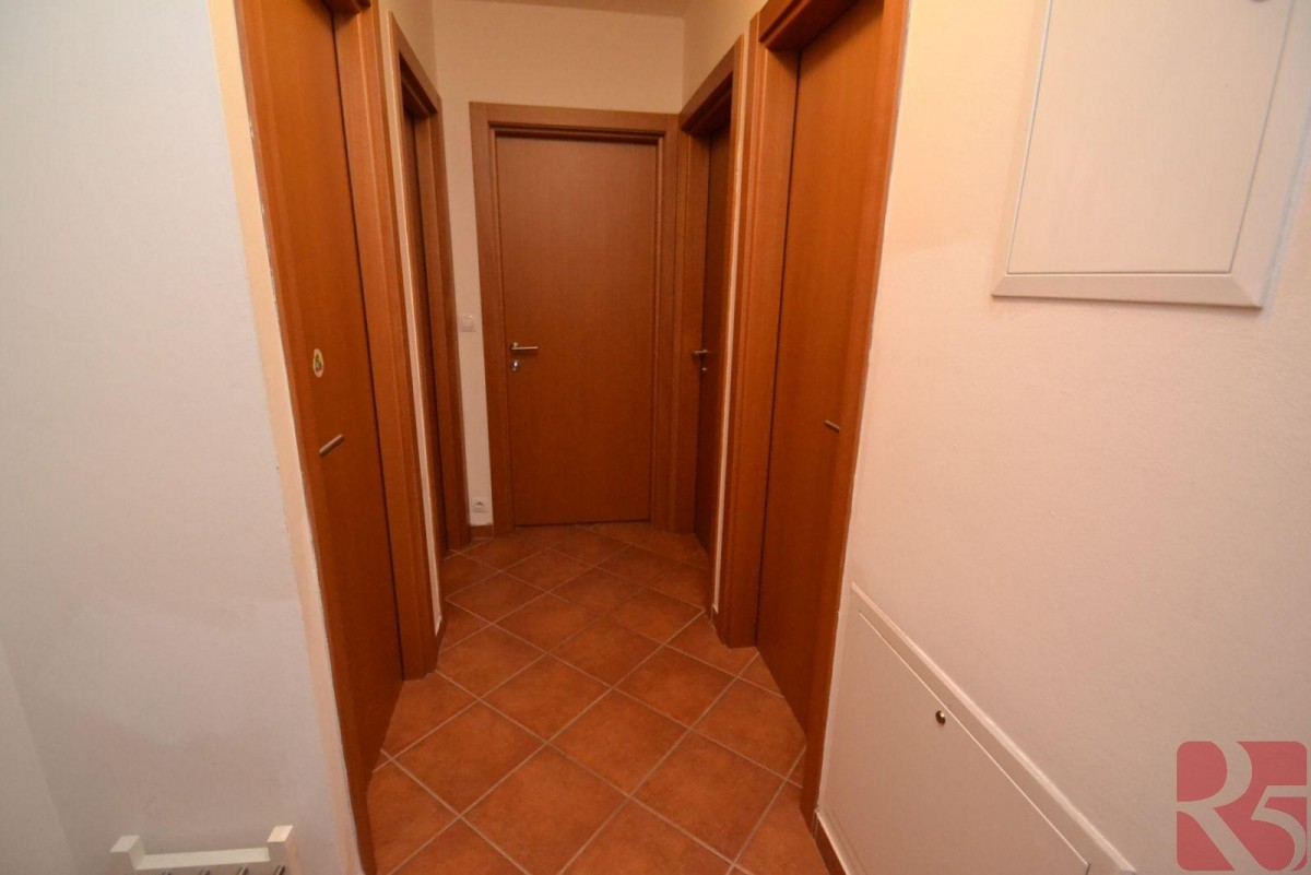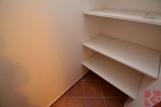 Vstupní chodba se vstupem do obývacího pokoje, ložnice, koupelny, samostatné toalety a komory. Byt je velmi prostorný, světlý. K bytu náleží prostorný balkon s příjemným posezením a výhledem do vnitrobloku se společnou zahradou k užívání. Podlahy plovoucí a dlažba.