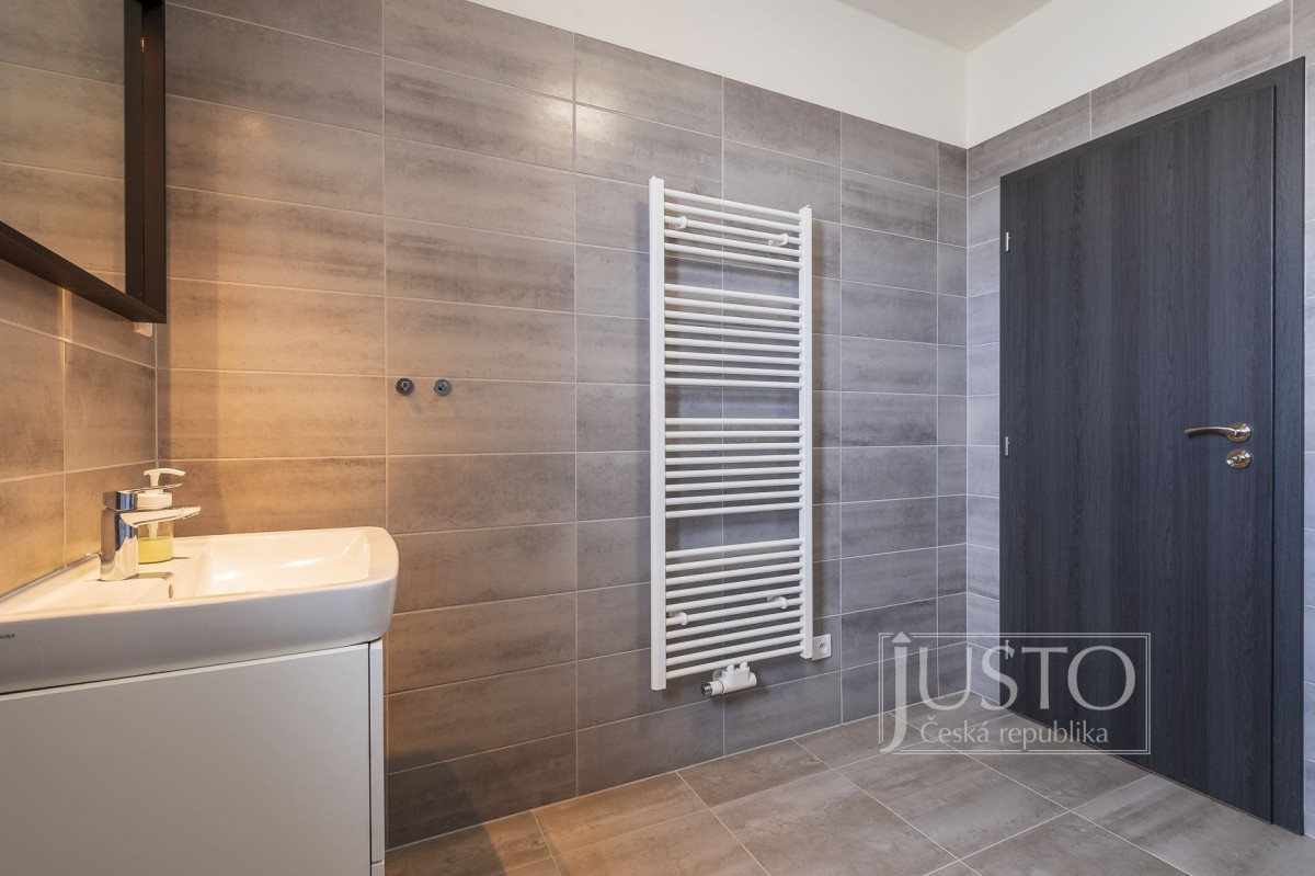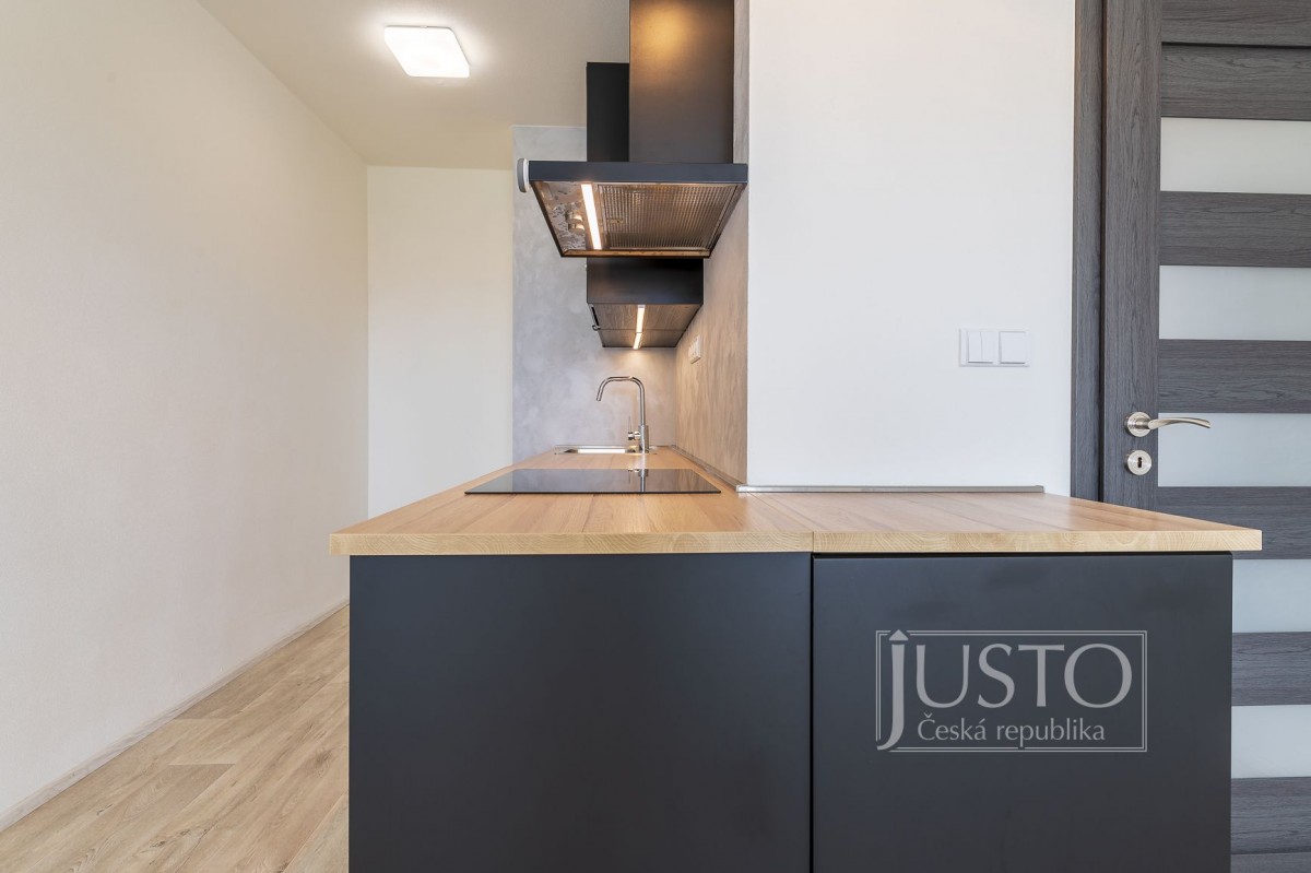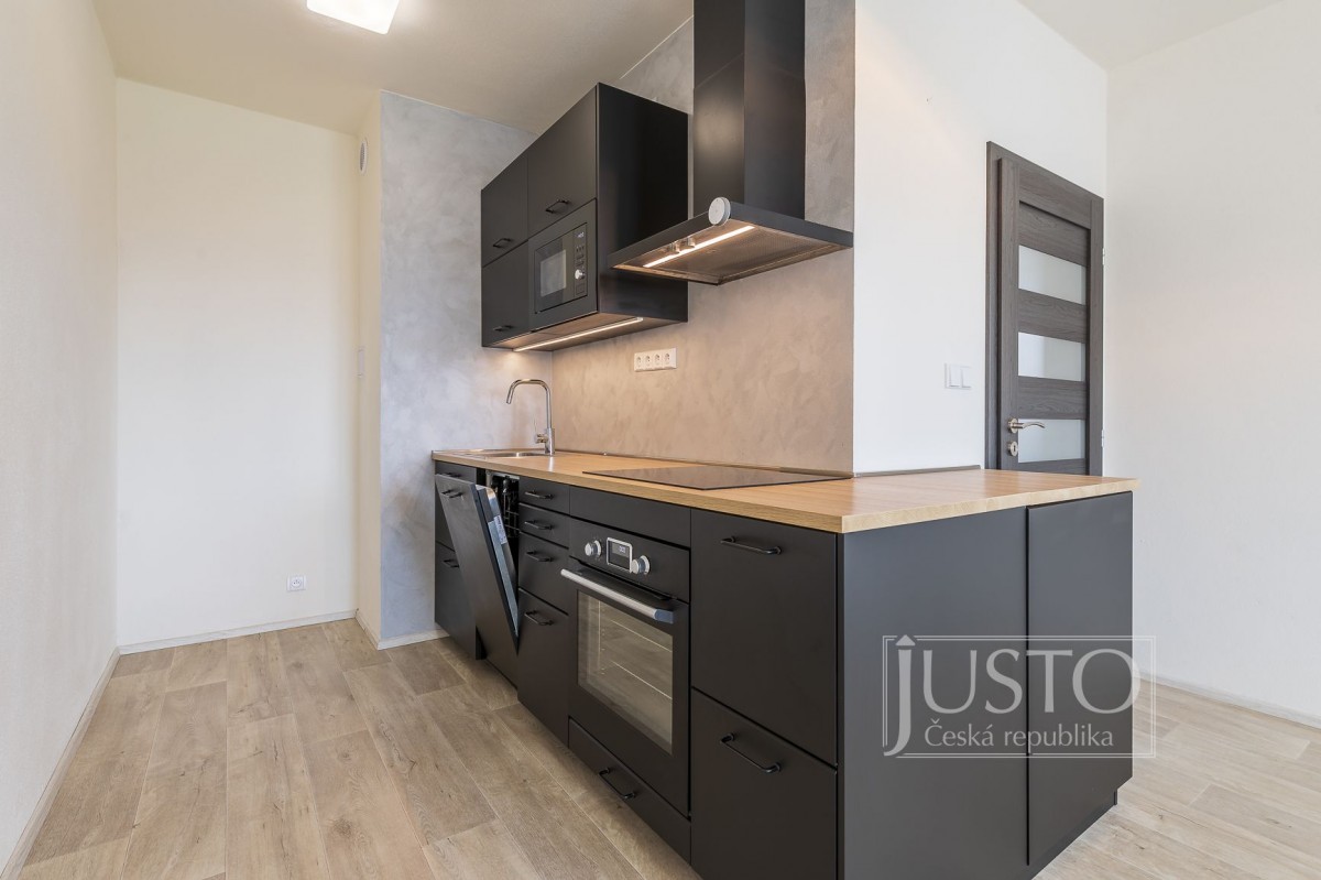 V kuchyni je nová kuchyňská linka s vestavěnými elektrospotřebiči, tedy myčkou, mikrovlnnou troubou, digestoří, varnou deskou s indukcí a elektrickou horkovzdušnou troubou, to vše z firmy IKEA.