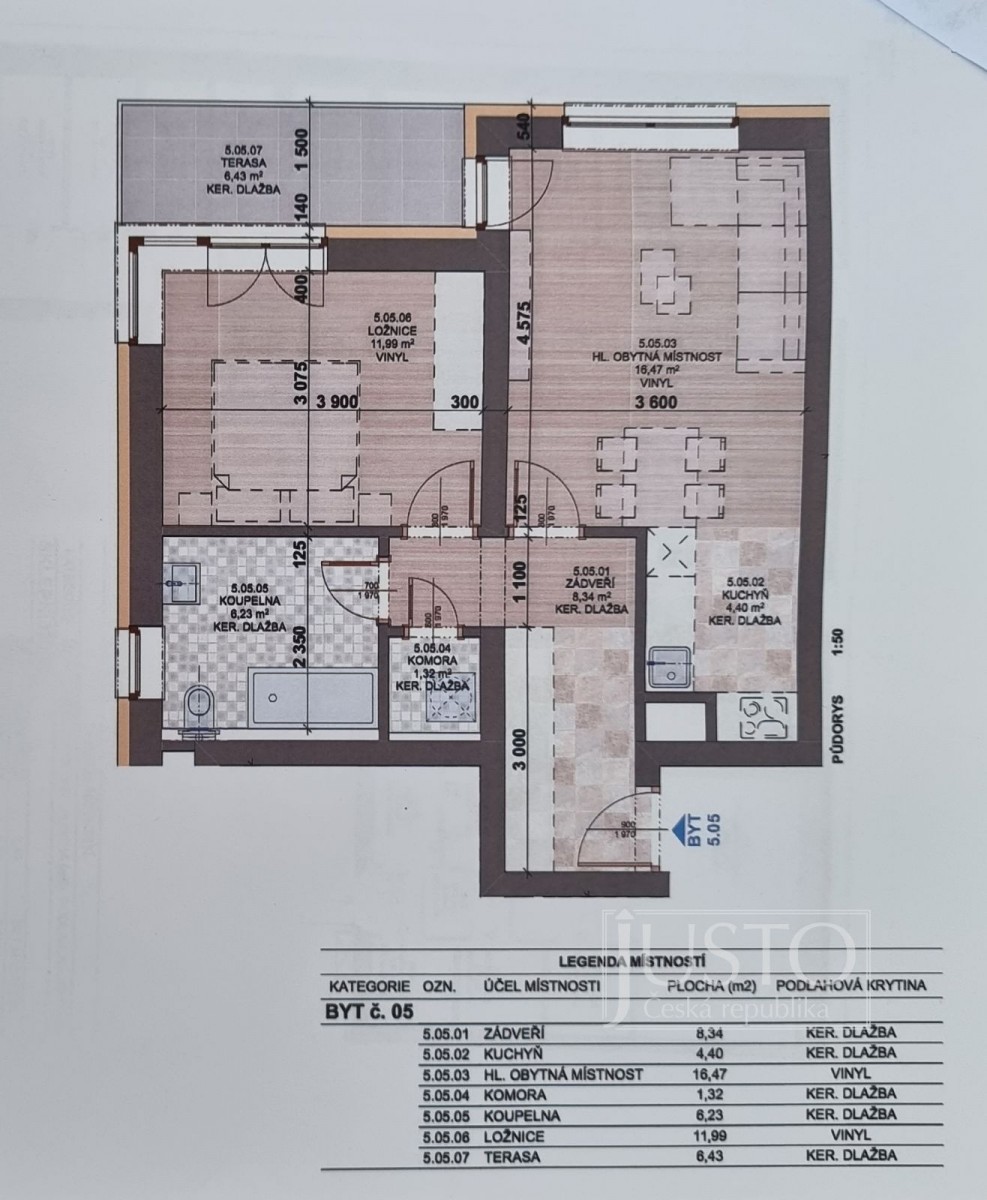 Ve výhradním zastoupení majitele Vám nabízím do pronájmu byt 2+kk s terasou o celkové výměře 56, 1 m².