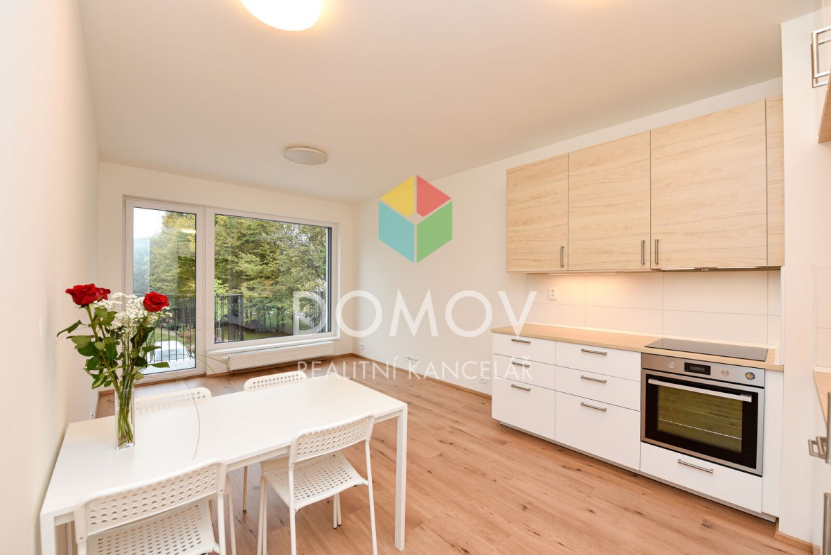 Byt je vybaven kuchyňskou linkou s vestavěnými spotřebiči (indukční varná deska, digestoř, el. trouba, lednice) a velkou šatní skříní v chodbě. V chodbě je rovněž dostatek místa např. pro vybudování pracovního koutku.