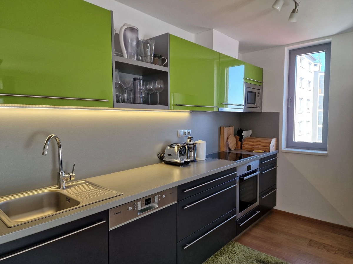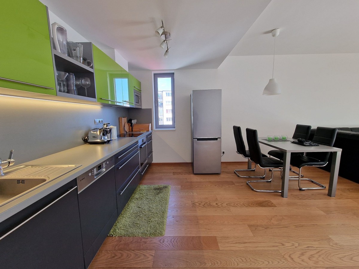 Předmětem pronájmu je kompletně zařízený byt s dispozicí 2+kk o výměře 57, 3 m2 s balkónem 4, 9 m2 ve čtvrtém nadzemním podlaží projektu Palác Ehrlich.