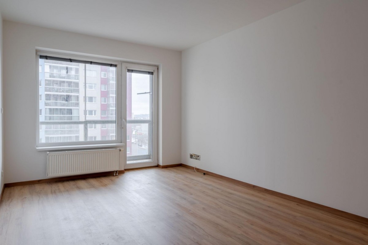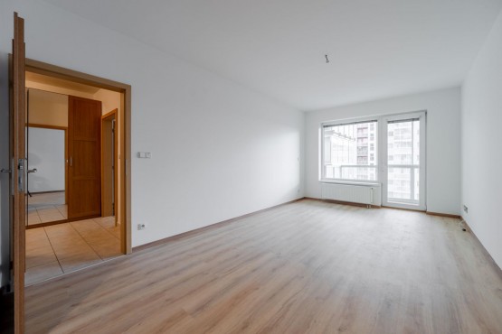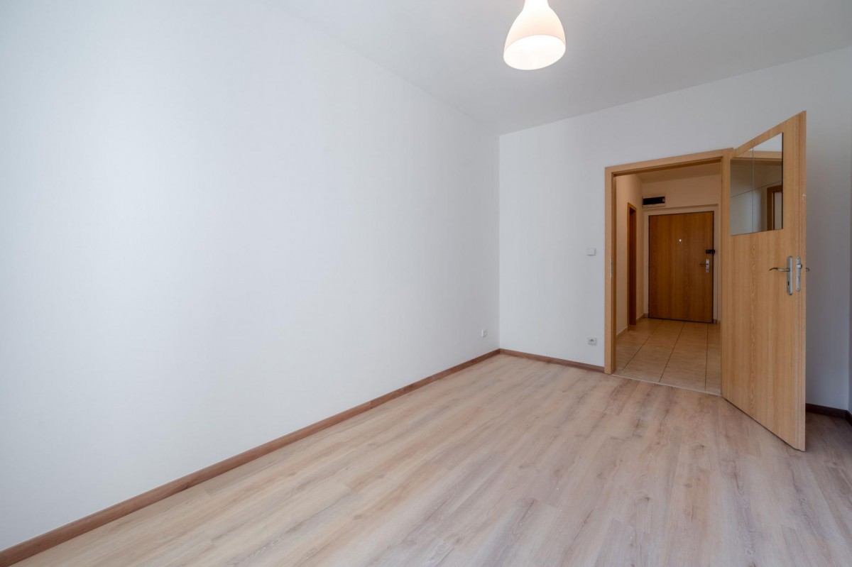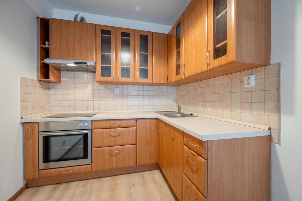 Byt se skládá z předsíně, kde je umístěna velká šatní skříň, z předsíně vedou vstupy do ložnice, obývacího pokoje a do koupelny. Obývací pokoj je skvěle řešený, jeho součástí je kuchyňským kout, poskytuje dostatek místa pro několik zón využití, je odhlučněn, má vstup na krytý balkon, kde je díky částečnému zasklení útulno. Koupelna s toaletou, vanou umyvadlem, topným žebříkem a přípojkou na pračku. Kuchyňská linka je vybavena vestavěnými spotřebiči (trouba, varná deska, digestoř, myčka).