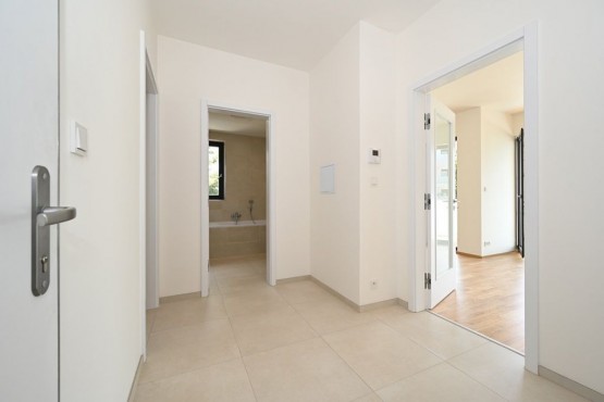 Právě dokončený, jižně orientovaný byt pár kroků od stanice metra Jinonice. Ložnice na východ s výhledem na vzrostlé stromy. Ve všech oknech elektrické stahovací rolety. Byt bude vybaven světly v celém bytě včetně zrcadla... v koupelně. Může být dovybaven pračkou a lednicí. Podařený projekt, včetně umývárny na kola v prostorách garážového stání, prostorného sklepu.