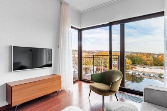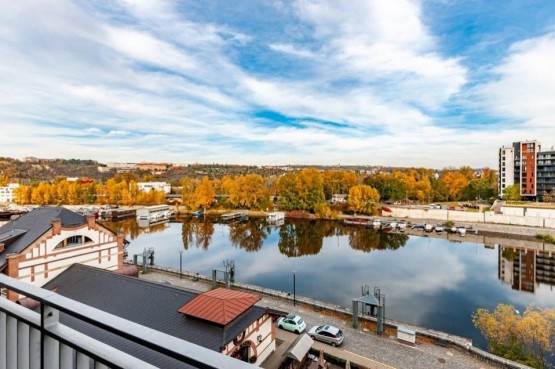 Slunný, moderní a vybavený byt 2+kk (57m2) s terasou (15m2), balkonem (5m2), parkovacím místem v ceně nájmu (k dispozici ihned), v... 5. nadzemním podlaží rezidenčního komplexu Prague Marina, situovaného na břehu Vltavy v rychle se rozvíjející části Holešovic. Moderní bytový projekt z roku 2009 disponuje podzemními garážemi a vysokým stupněm zabezpečení. Lokalita nabízí kompletní občanskou vybavenost a dostupnost do centra během několika minut málo minut.