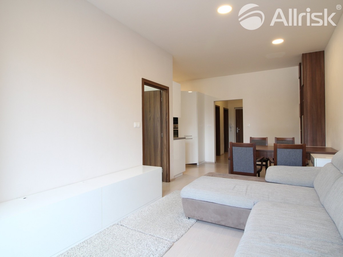 Byt tvoří hlavní obytná místnost 28 m2 s kuchyňskou linkou a vstupem na balkon se západní orientací, ložnice 12 m2 a koupelna s vanou a samostatná toaleta, vše propojeno vstupní chodbou 9 m2 s prostornou komorou/šatnou. Součástí bytu je kompletně vybavená kuchyňská linka včetně spotřebičů, sedačka, jídelní stůl, skříně a postel. Součástí je také sklep cca 4 m2. Volné ihned.