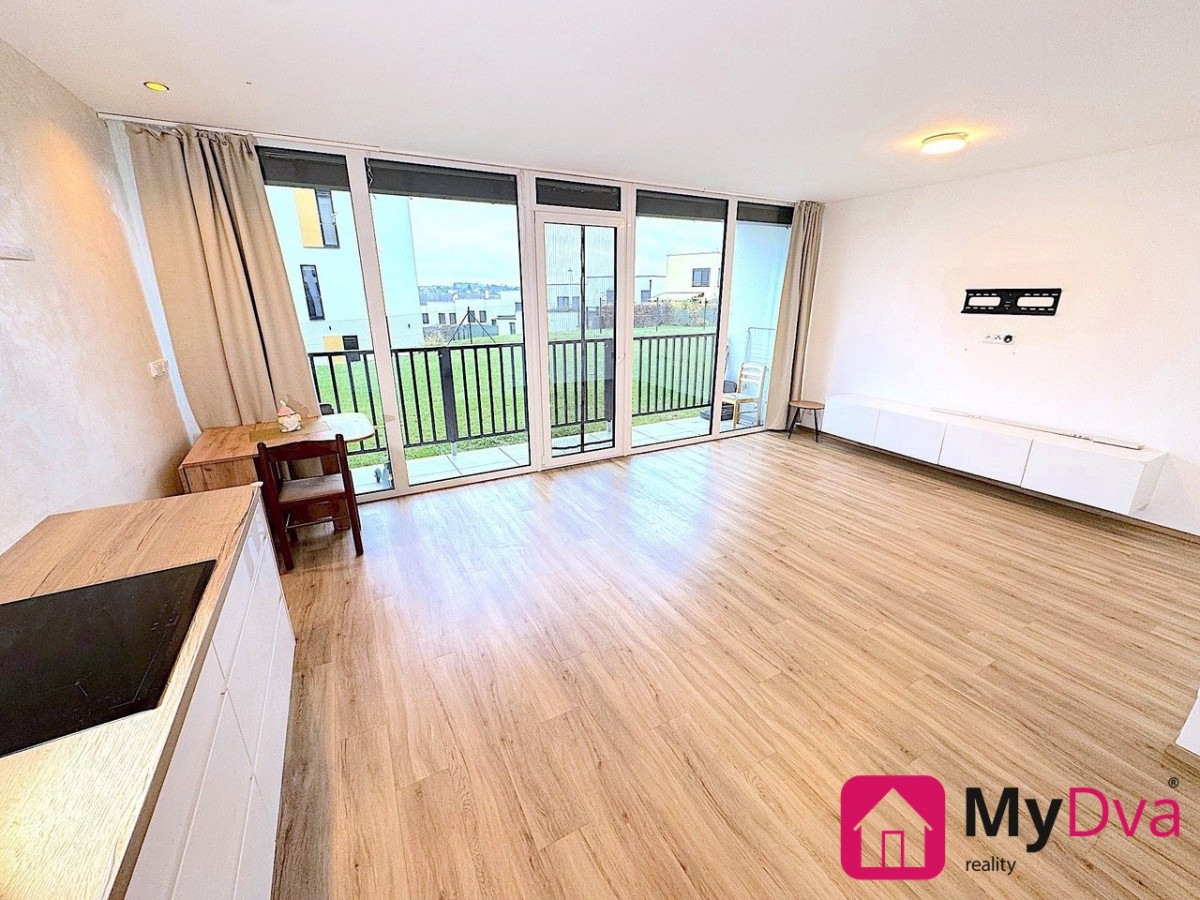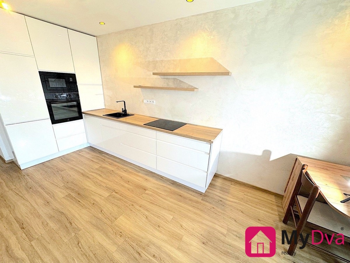 Nabízíme k pronájmu byt o dispozici 2+kk a podlahové ploše 58 m2. Jedná se o novostavbu cihlového bytu, který se nachází v 1. nadzemním podlaží. Byt se pronajímá ...jako částečně vybavený. Skládá se z předsíně s úložnými prostory na míru, obývacího pokoje s venkovní terasou, která je propojena s jídelnou a kuchyňským koutem a dále z ložnice, šatny s vestavěnými policemi, koupelny se sprchovým koutem a toalety. Nový nájemník si může pronajmout parkovací místo před domem. Kuchyně má všechny vestavěné spotřebiče, myčku nádobí, kombinovanou lednici, mikrovlnou a horkovzdušnou troubu. Otevřený prostor se da zastínit automatickými lamelovými žaluziemi. Výměry bytu jsou orientační.