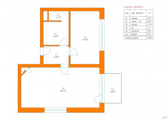 2+kk, 58 m2, cihlová, OV, 2. podlaží