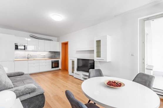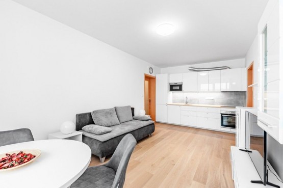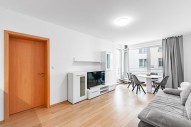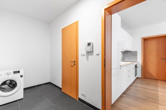 Vybavení zahrnuje kompletně zařízenou kuchyňskou linku všemi spotřebiči, sedací soupravu v obývacím pokoji, TV, internetové připojeníové připojení (v ceně), dostatek úložného prostoru v šatních skříni, pračku. Cena nájmu zahrnuje kompletní vybavení zahrnuté ve fotodokumentaci.