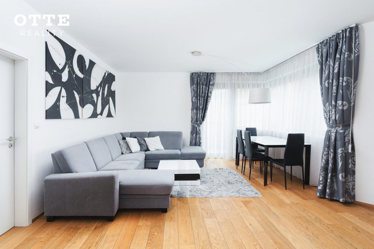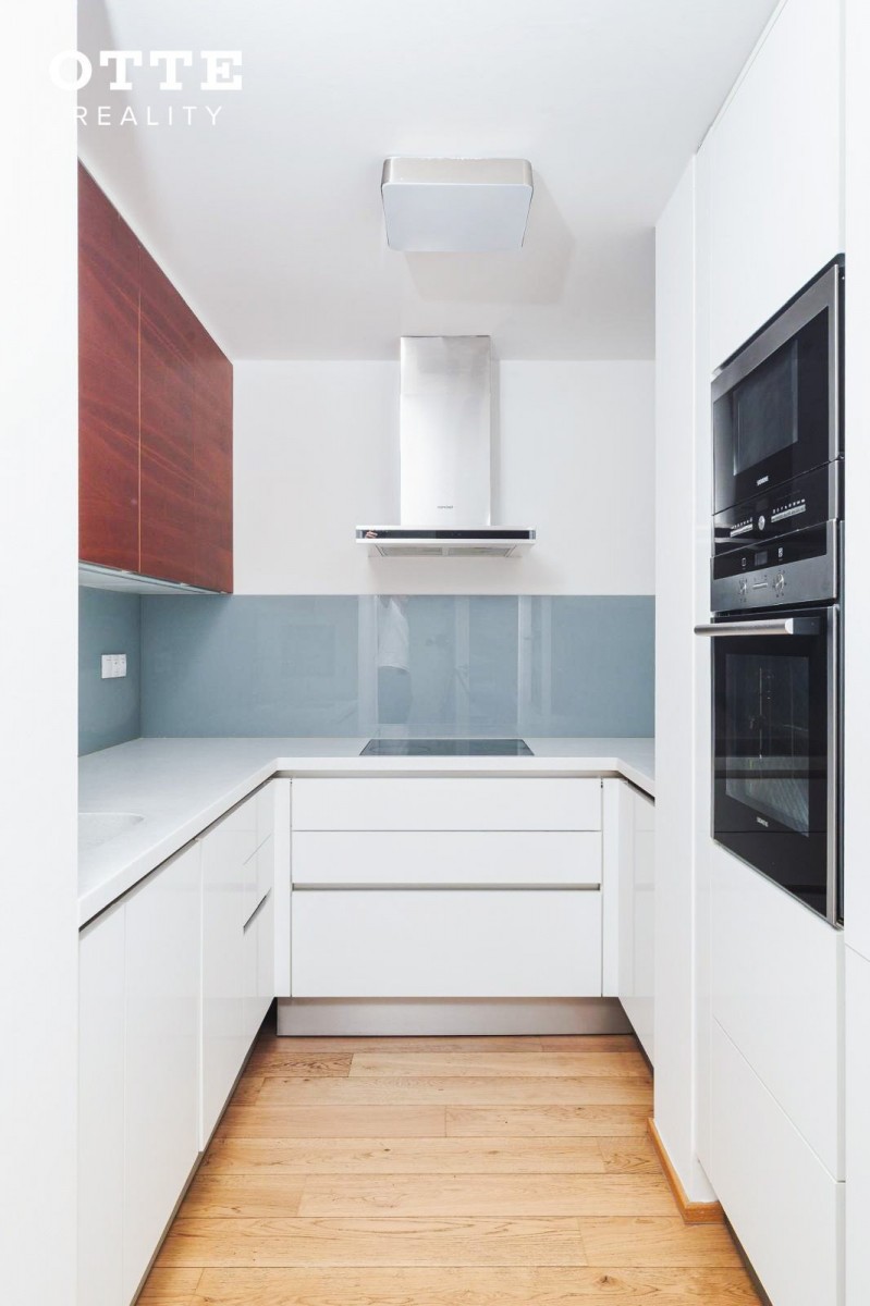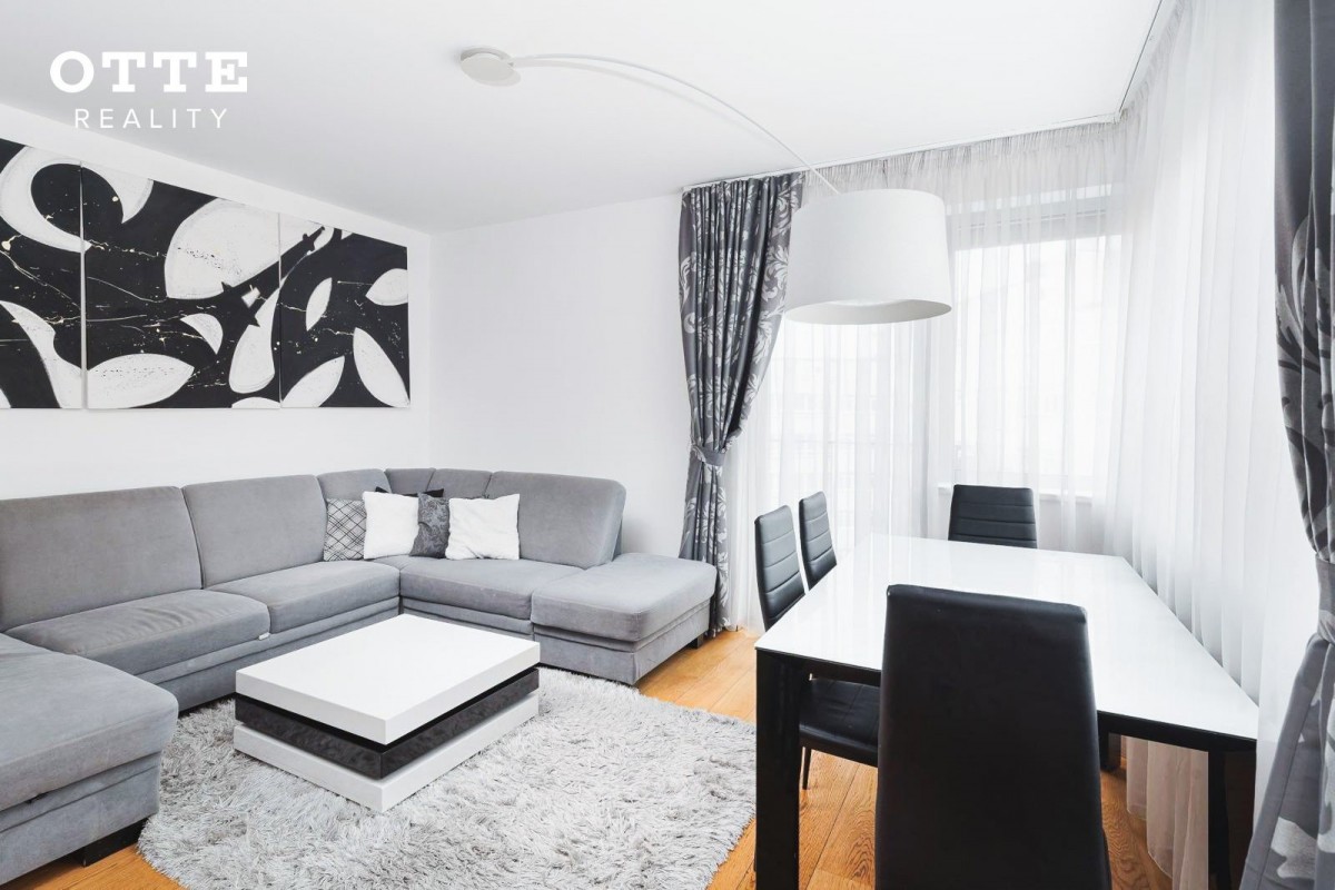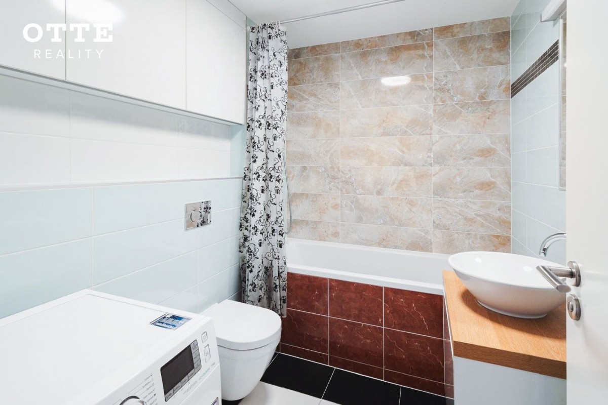 Byt je útulný a působí svěžím a moderním dojmem. Teplo a ohřev vody zajišťuje systém dálkové dodávky z teplárny. Podlahu kryjí dřevěné podlahy nebo dlažba, v oknech jsou vnitřní žaluzie. V bytě je umístěn videotelefon pro komunikaci s recepcí, samozřejmostí je internetové připojení, TV, SAT. Předmětem pronájmu a součástí ceny je také zděná sklepní kóje o velikosti 3, 5 m2 umístěná na stejném podlaží domu jako je byt, vhodná pro uskladnění sportovních či sezónních věcí. Garážové parkovací stání ve druhém podzemním podlaží domu, ke kterému lze pohodlně dojet výtahem je za cenu 1. 600 Kč/měsíc.