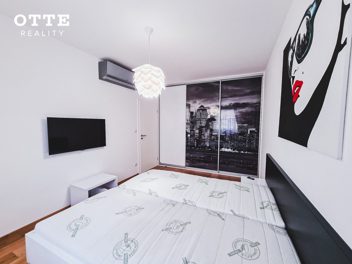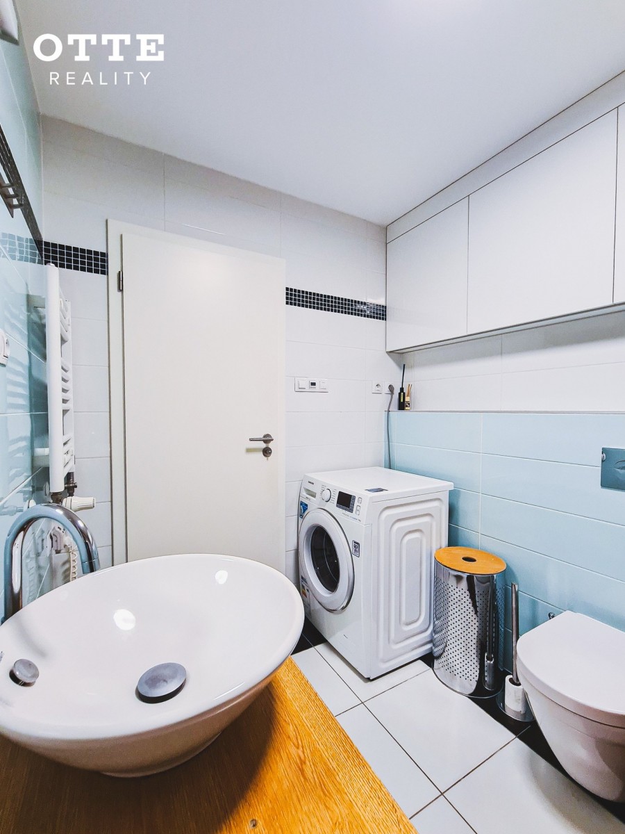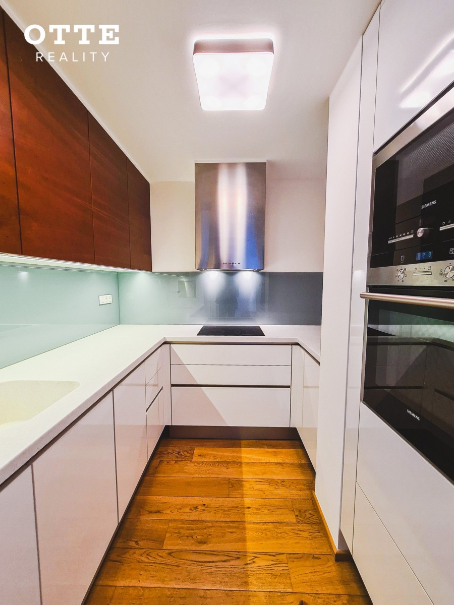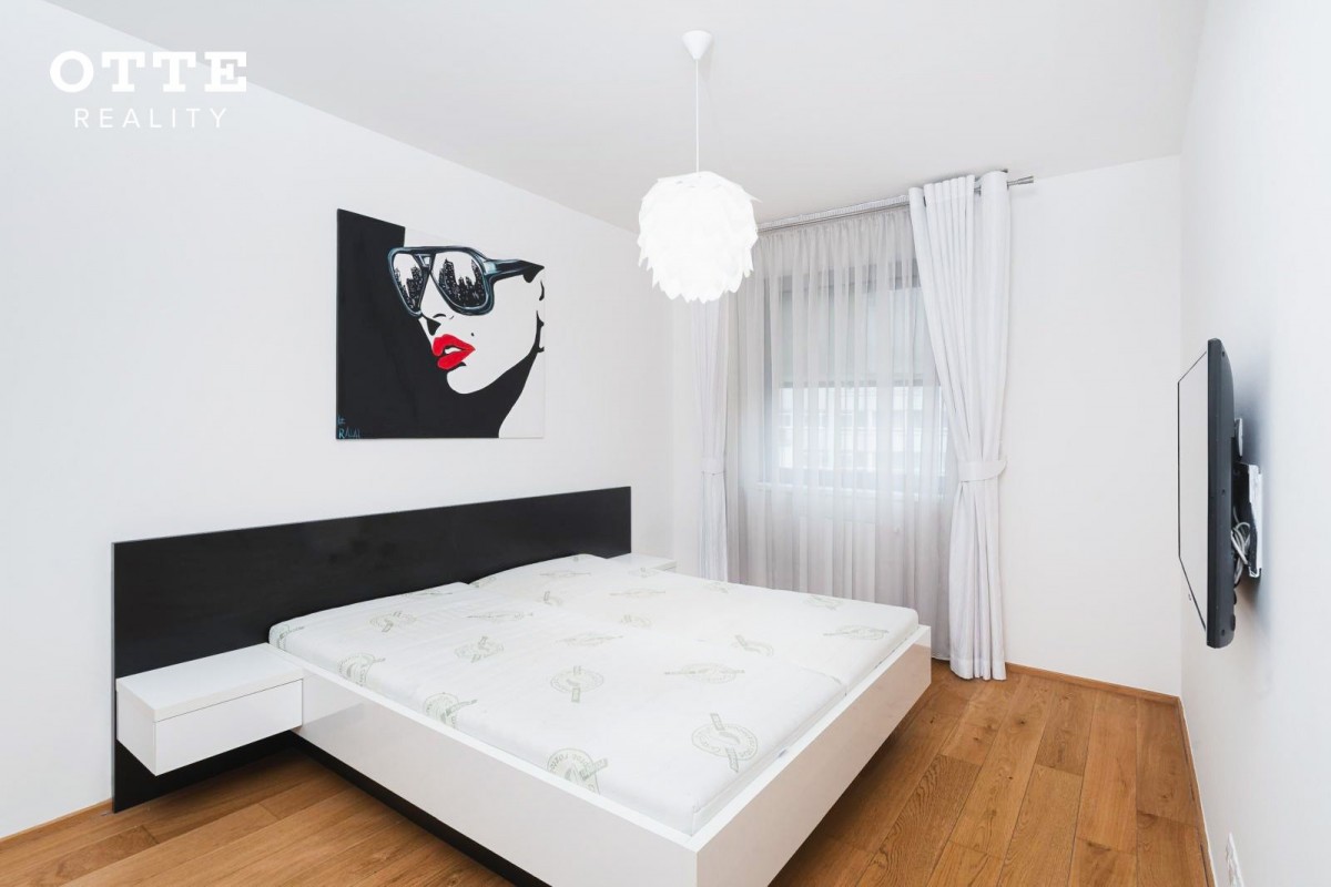Byt je útulný a působí svěžím a moderním dojmem. Teplo a ohřev vody zajišťuje systém dálkové dodávky z teplárny. Podlahu kryjí dřevěné podlahy nebo dlažba, v oknech jsou vnitřní žaluzie. V bytě je umístěn videotelefon pro komunikaci s recepcí, samozřejmostí je internetové připojení, TV, SAT. Předmětem pronájmu a součástí ceny je také zděná sklepní kóje o velikosti 3, 5 m2 umístěná na stejném podlaží domu jako je byt, vhodná pro uskladnění sportovních či sezónních věcí. Garážové parkovací stání ve druhém podzemním podlaží domu, ke kterému lze pohodlně dojet výtahem je za cenu 1. 600 Kč/měsíc.