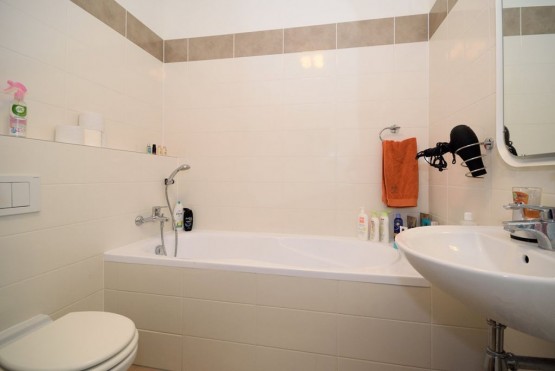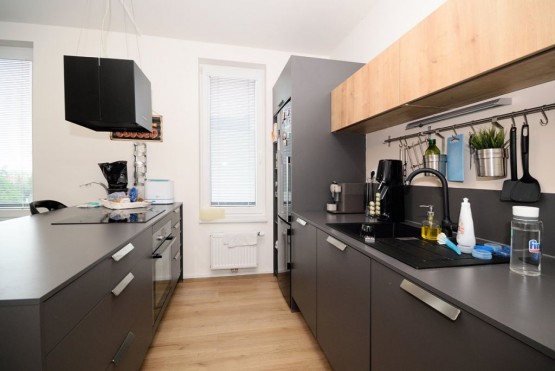 Nabízíme Vám k pronájmu moc hezký zařízený byt 2+kk s balkonem o celkové rozloze 59, 5 m2, který se nachází v 5. patře cihlové novostavby včetně výtahu. Kuchyňská li...nka vybavena sklo - keramickou varnou deskou, troubou, myčkou, lednicí s mrazničkou a digestoří. K dispozici je také pračka se sušičkou. Koupelna s vanou. Plovoucí podlahy a dlažba. Ústřední vytápění. Dostatek úložného prostoru díky velké komoře, která se nachází přímo v bytě. V ceně je již zahrnuté internetové připojeníové připojení a kabelová televize. K bytu náleží venkovní kryté parkovací stání pro jeden automobil za poplatek. Dobrá dopravní dostupnost. Jen pár kroků od domu se nachází autobusová zastávka s výborným dopravním spojením na stanice metra B a C. Stanice metra "C" Letňany v docházkové vzdálenosti. Jedná se o velice klidnou část Prahy s přilehlým lesoparkem vhodným k procházkám a nedalekým dětským hřištěm. Nedaleko domu se také nachází cyklostezka. Výborné nákupní možnosti, sportoviště a bazén v okolí. K nastěhování od 1. 7. 2019.