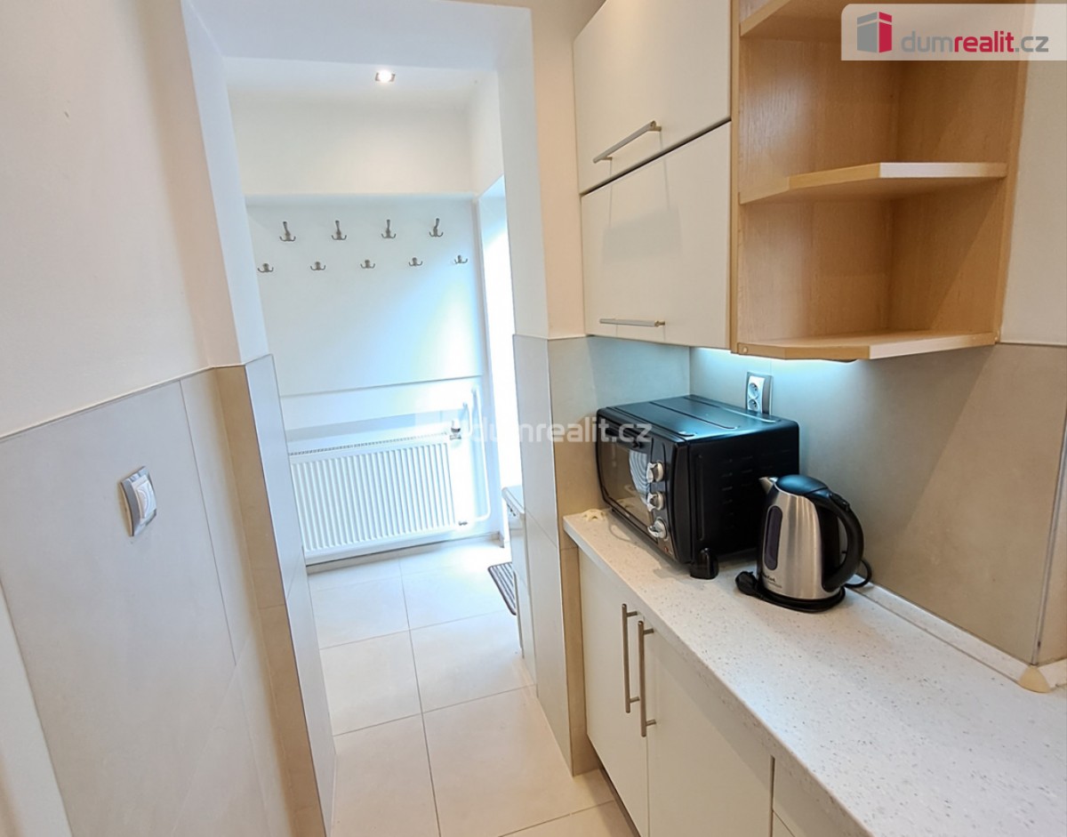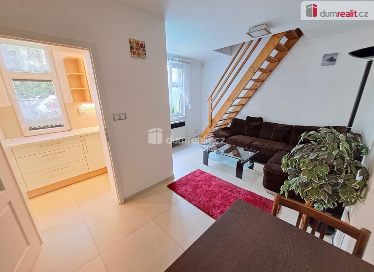 Dispozičně tvoří prostor bytové jednotky vstupní předsíň, kuchyňský kout s plně vybavenou kuchyňskou linkou, obývací pokoj se schodištěm do patra, dále koupelna se sprchovým koutem a toaletou a pračkou a prostorná ložnice v patře. Precizní rekonstrukcí vznikl velice moc hezký interiér bytové jednotky s maximálním využitím úložných prostor. Vlastní plynové topení, ohřev vody el. bojlerem, vlastní měřiče vody, elektřiny a plynu, vlastní zabezpečovací zařízení, bezpečnostní dveře, plastová okna se žaluziemi, plovoucí podlahy a dlažby, kvalitní sanita i kuchyňská linka včetně spotřebičů. Byt v domku je kompletně zařízený, nově vymalovaný a připravený pro nastěhování. Vhodné pro 1 - 2 osoby. Podmínkou nekuřáci, bez zvířat. Klidná lokalita vilové zástavby s perfektní dostupností do centra Prahy. Metro pěší chůzí 10 minut, BUS, noční spoje, vlak do centra Prahy hl. nádr. jede 10 minut. Busem 7 minut OC Černý Most, obchody, banky, kino, restaurace. Procházkou rozsáhlý přírodní park a kyjské rybníky, cyklostezky, sportoviště. Cena 17. 000, - Kč/měs. + veškeré vyúčtovatelné poplatky (voda, elektřina, plyn, internetové připojení) 3. 500, - Kč/měs. (2 osoby) + vratná kauce + provize RK. K nastěhování ihned. Ev. číslo: 649280. Energetický štítek: C