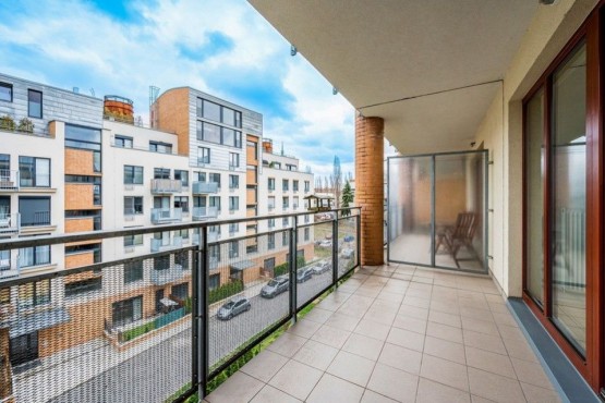 Dispozici bytu tvoří vstupní chodba, otevřený prostor obývacího pokoje s kuchyní a vstupem na východní terasu, ložnice orientovaná na západ, koupelna se sprchovým koutem a toaletou. Součástí pronájmu je také parkovací stání v podzemních garážích a sklep.