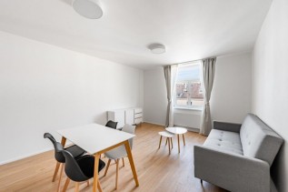 Krásný úplně nový byt 2+kk, 59 m2 + sklep, čerstvě po rekonstrukci, s klimatizací, v 5. podlaží zrekonstruované historické nízkoenergetické (třída B) budovy s nov...ým výtahem, plně zateplenou fasádou, novými okny typu Eurookna, s vnitřní zahrádkou, kousek od Lyčkova náměstí a parku Kaizlovy sady, v nové a rychle se rozvíjející čtvrti Karlín, Praha 8.