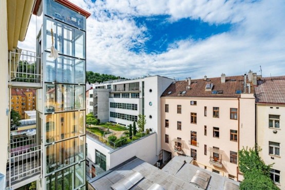 Krásný úplně nový byt 2+kk, 59 m2 + sklep, čerstvě po rekonstrukci, s klimatizací, v 5. podlaží zrekonstruované historické nízk...oenergetické (třída B) budovy s novým výtahem, plně zateplenou fasádou, novými okny typu Eurookna, s vnitřní zahrádkou, kousek od Lyčkova náměstí a parku Kaizlovy sady, v nové a rychle se rozvíjející čtvrti Karlín, Praha 8.