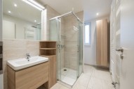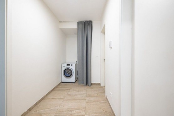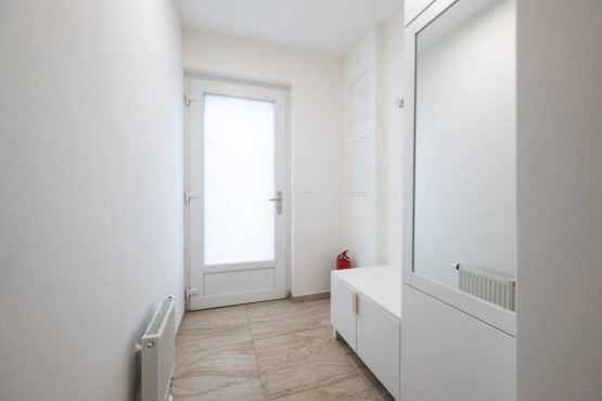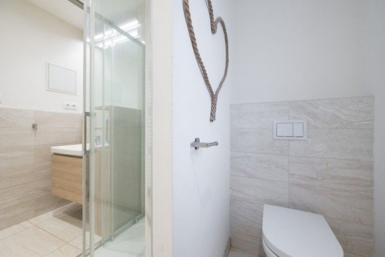 Byt se nachází v energeticky úsporné novostavbě se třemi samostatnými bytovými jednotkami a je velice dobře dispozičně řešen. Prostorná vstupní chodba, hezky řešená koupelna se sprchovým koutem, sociální zařízení WC a skříňkami.