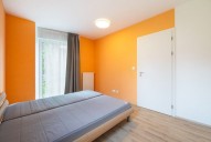 Samostatný prostorný obývací pokoj s plně zařízeným kuchyňským koutem a ložnice s francouzským oknem, s přímým vstupem do zahrady. (stejně tak z obývacího pokoje)