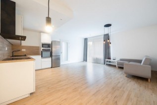 Byt je částečně vybavený. Lednice, vestavěná trouba, mikrovlnná trouba, myčka, pračka, varná deska, dvojlůžko s matrací, botník, skříň a plynový kotel, který zajišťuje ohřev vody a vytápění bytu.