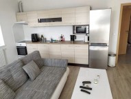 Dominantou bytu: obývací pokoj s kuchyňským koutem - / Kl, sporák, digestoř /.
