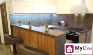 Byt je částečně zařízený, nabízí kvalitní kuchyňskou linku včetně vestavěných spotřebičů, dále lednici, barové židle šatní skříň a konferenční stůl.