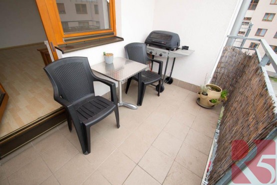 Byt se nabízí vybavený kuchyňskou linkou s lednicí, mrazákem, elektrickou troubou, sklo - keramickou varnou deskou, odsavačem par. V pokoji k dispozici jídelní stůl a židle, v ložnici prostorná šatní skříň. Z obývacího pokoje i ložnice vstup na prostorný balkon. Dřevěná okna mají žaluzie. V koupelně najdeme vanu, umyvadlo se zrcadlem.