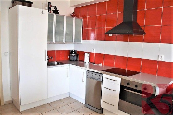 Pronajímá se zařízen kuchyňskou linkou se spotřebiči, lednicí s mrazákem, troubou, varnou deskou, odsavačem par. Prostorný obývací pokoj rozdělen na společenskou a klidovou část. V ložnici prostor na šatní skříň. Ve vstupní chodbě druhý prostor na velkou šatní skříň a šatna.