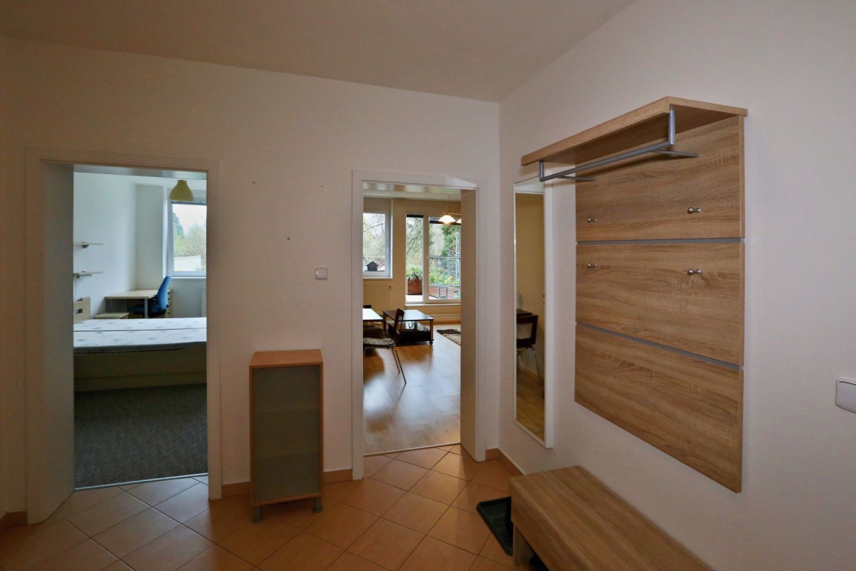 Byt se nachází sice ve městě, ale v místě plné zeleně, v blízkosti koupaliště, zimního stadionu i obchodního centra.
