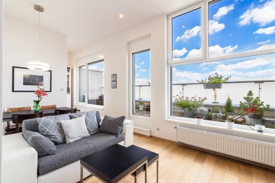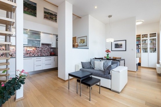 Pronájem velice slunného mezonetového bytu ...uchyňský kout">2+kk s terasou v rezidenční čtvrti Na Hvězdárně.
