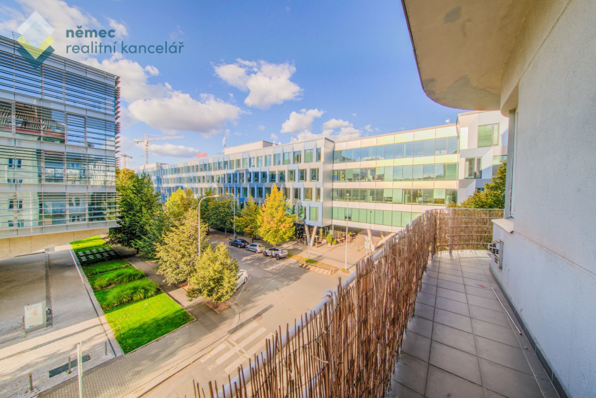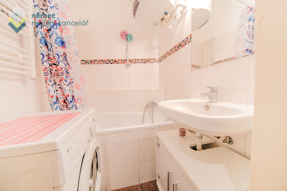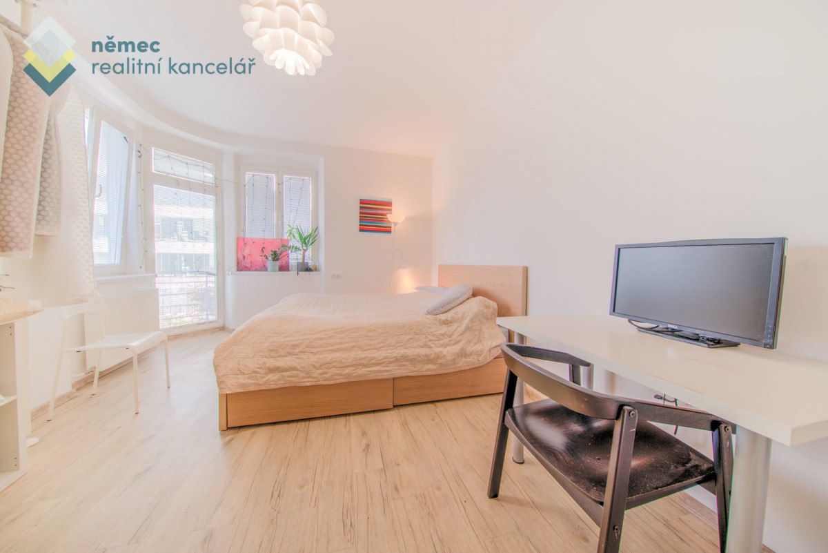Velkou výhodou je balkon přes celou ložnici. K bytu dále náleží uzamykatelná sklepní kóje o ploše cca 1, 5 m².