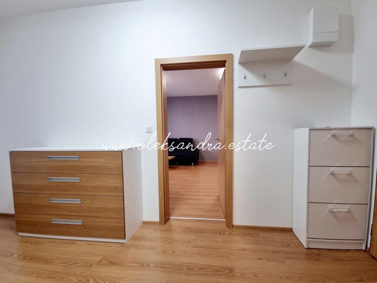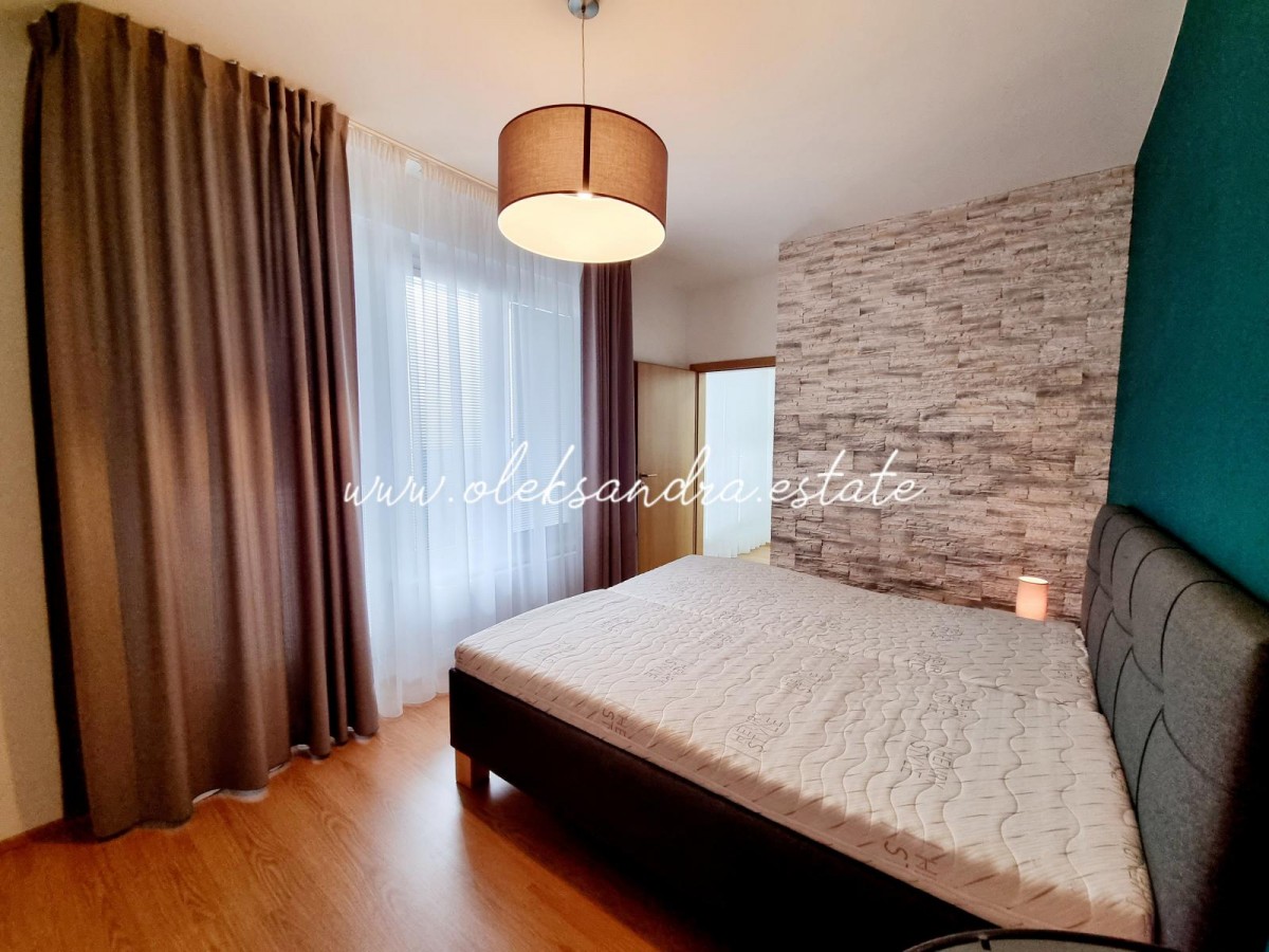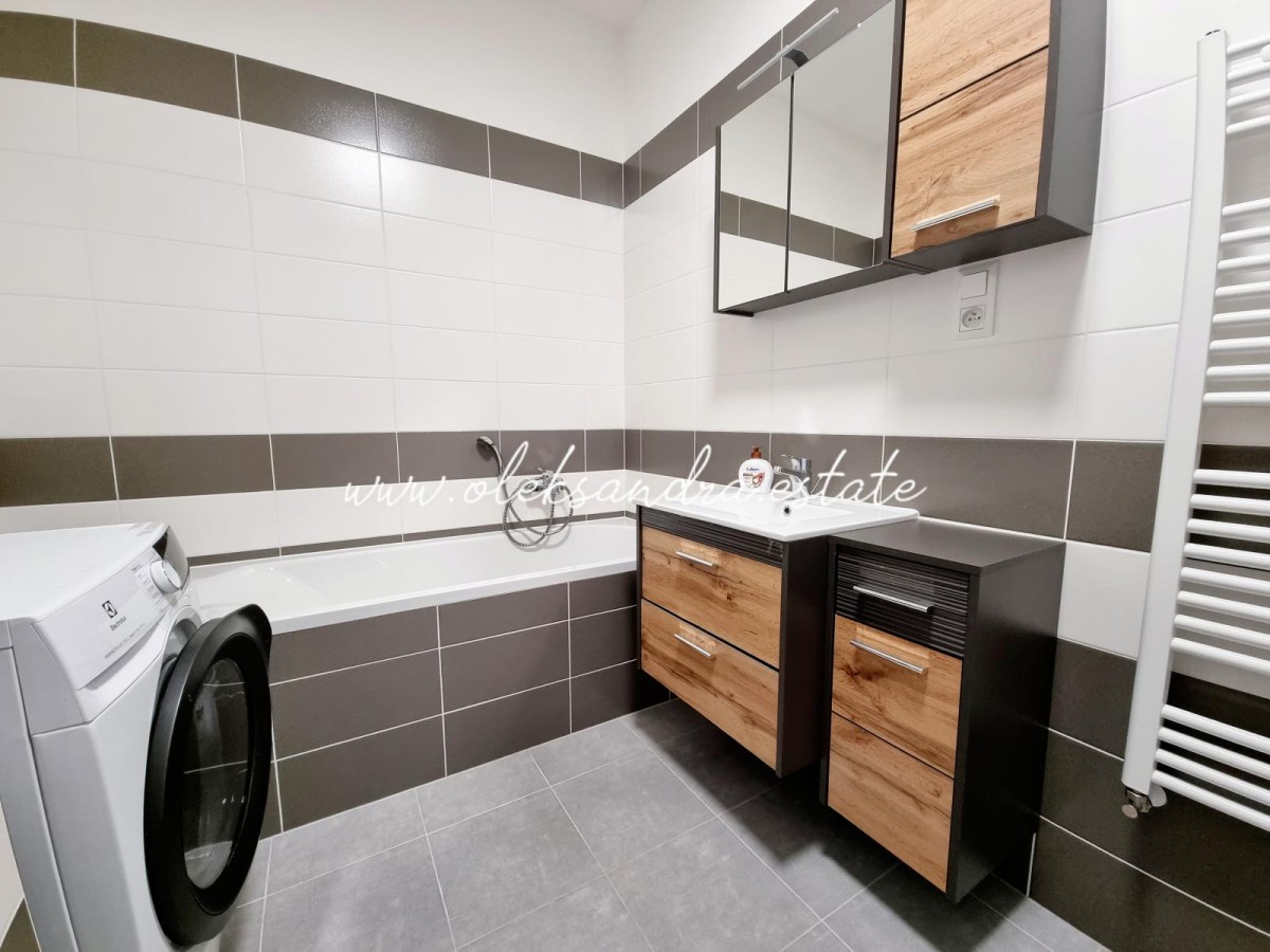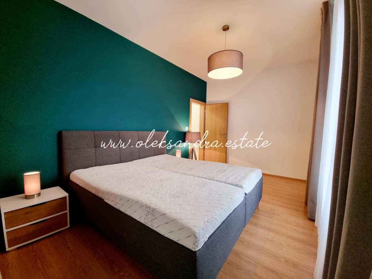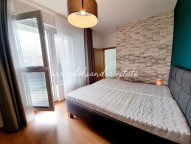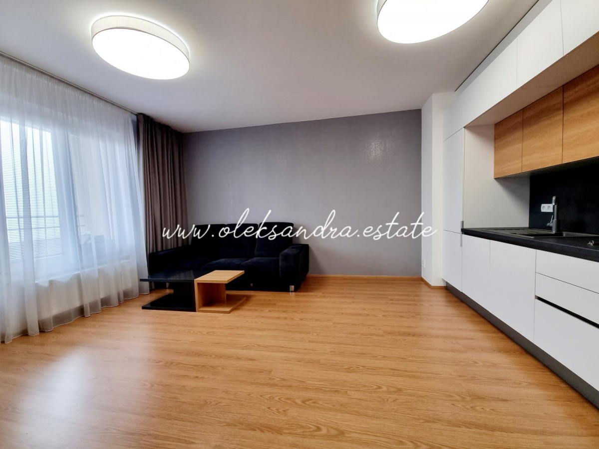 Byt tvoří obývací pokoj s plně vybavenou kuchyní, velký balkon s vcodem z každé mistností, ložnice s šatnou, koupelna s vanou a sociální zařízení WC a vstupní chodba s vestavěnou skříní.