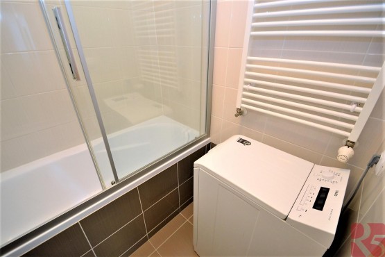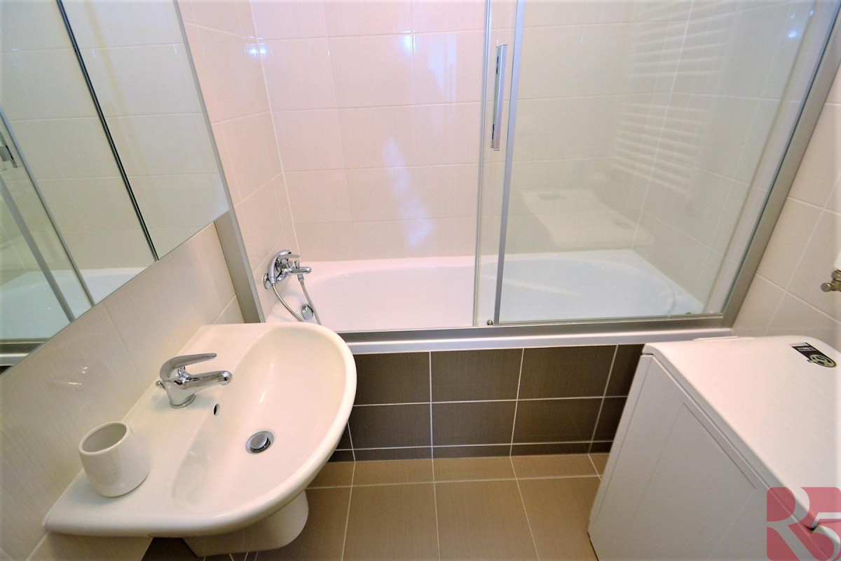 Obytná plocha 58m + 6m, zasklená lodžie. Byt je vybaven nábytkem mimo sedací soupr...avy, byla nájemníka (majitel je ochotný podítel se na koupi nové sedačky). Kuchyň vybavená indukční varnou deskou, multifunkční troubou, myčkou, lednicí s mrazákem a odsavačem par. V kuchyni komora pro potraviny. V chodbě je komora, samostatná toaleta a koupelna s vanou. Ložnice vybavena vestavnou skříní s velkým úložným prostorem. Moderní koupelna s kvalitními obklady, toaletní skříňkou a pračkou. Pěkný zasklený balkon s výhledem na Prahu.