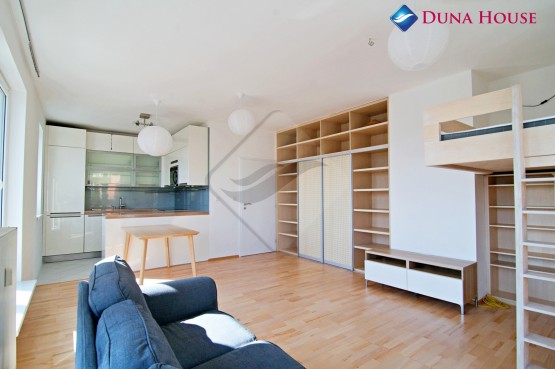 Tento byt nabízí rozměrný obývací pokoj s vybaveným kuchyňským koutem. Pokoj je ...orientován na sever a na východ. Je zde dostatek místa pro jídelní stůl, zónu pro odpočinek s pohovkou a konferenčním stolkem. Součástí vybavení vestavěná skříň a knihovna. Kuchyňský kout je šikovně oddělen od obývací části a je vybaven varnou deskou, troubou, mikrovlnou troubou a myčkou. Dále je zde k dispozici oddělený pokoj orientovaný na východ a prostorná koupelna s vanou a žebřinovým topením. Do všech těchto místností se dostanete ze vstupní předsíně, která poskytuje notné množství úložného prostoru ve formě dvou velkých vestavěných skříní. Byt je ve velmi dobrém udržovaném stavu, nově jsou zde instalovány dveře se zárubněmi a byly revitalizovány dřevěné plovoucí podlahy. Součástí nájmu je také garážové stání v suterénu domu.