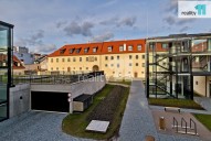 Areál je uzavřený a neprůjezdný a tudíž poskytuje soukromí a bezpečí. Po průjezdu vraty do dvora jsou vozidla svedena do podzemní garáže. Ve vnitřním prostranství jsou relaxační zóny, lavičky a zeleň. Byt se nachází v 2. nadzemním podlaží, do kterého se dostanete z prosklené prostorné schodišťové haly, ve které je i výtah. Jako extra úložný prostor poslouží sdílená komora pro tři byty na patře, ve které se pohodlně uskladní větší předměty jako jsou např. kola či lyže. K bytu náleží sklep. S bytem lze pronajmout také garážové stání za 1 500 Kč měsíčně.