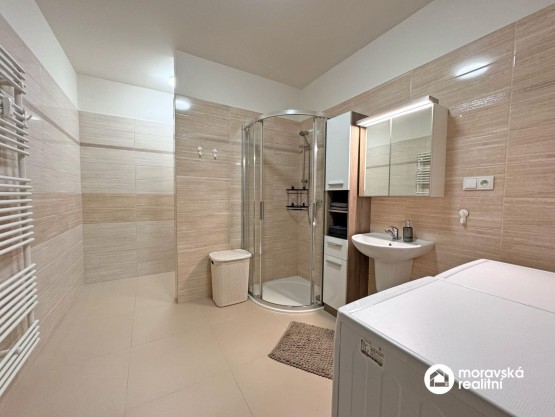 Vybavení na fotografiích není součástí pronájmu! Předmět n...ájmu se pronajímá vybavený kuchyňskou linkou (varná deska, trouba, lednice s mrazákem). V koupelně je sprchový kout, umyvadlo a toaleta.