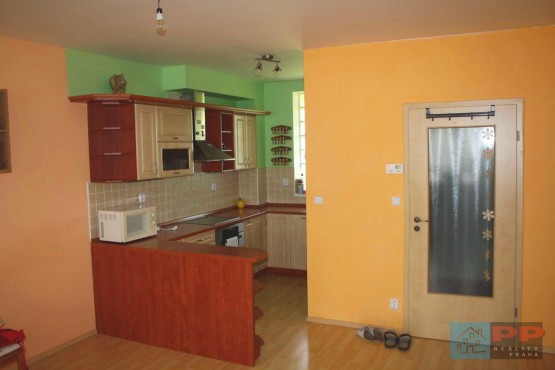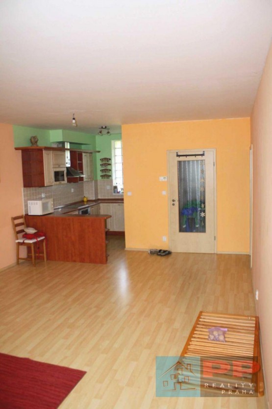 ID: 260201. Nabízíme k pronájmu pěkný byt 2+kk s terasou (59, 5m2 + 6, 5m2), sklepem (2m2) a garážovým stáním. Byt je situovaný v přízemí nov...ostavby z roku 2006 a má velký obývací pokoj (35m2). Orientace všech oken na jižní stranu. Terasa je zabezpečená mříží. Vytápění a ohřev teplé vody vlastním plynovým kotlem zn. Vaillant. Kuchyňská linka zn. ORESI má vestavěné spotřebiče (myčku nádobí, lednici, varnou desku s troubou). V předsíni a pokoji jsou vestavěné skříně od firmy INDECO. Ostatní nábytek v bytě není. Dům se nachází na konci klidné ulice na okraji Kolovrat. Zastávka autobusu cca 300m (na metro Háje 25 min). Dále je tu vlakové nádraží (23 min. na Hlavní nádraží). V Kolovratech je ZŠ, MŠ, pošta, doktoři. Pro větší nákupy se jezdí do blízkých Říčan nebo do Průhonic. Byt je k nastěhování od 1. 4. 2021, prohlídky dle dohody.