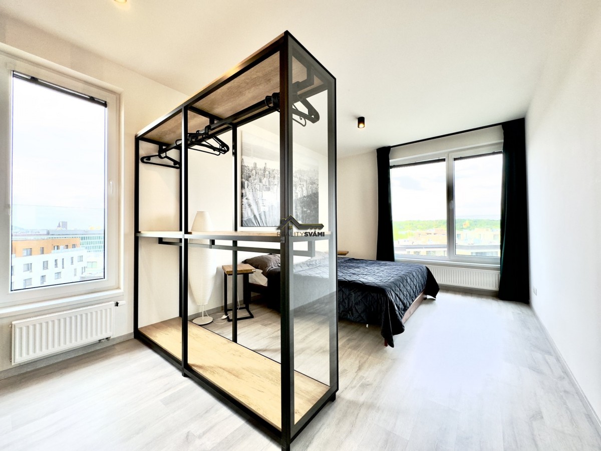 Byt je umístěn v 9. patře s moc hezkým výhledem na město.