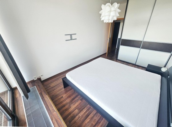 Byt se nachází v moderním bytovém komplexu v těsné blízkosti řeky Vltavy. Byt je zařízený. Obývací pokoj s kompletně vybavenou kuchyňskou linkou (trouba, varná deska, myčka, lednice s mrazákem, mikrovlnná trouba), TV a prostorný regál s úložným prostorem. Dále sedačka a jídelní stůl. Samostatná ložnice s manželskou postelí a vestavěnou skříní. Koupelna s vanou. K dispozici komora s pračkou. Prostorná předsíň s botníkem.