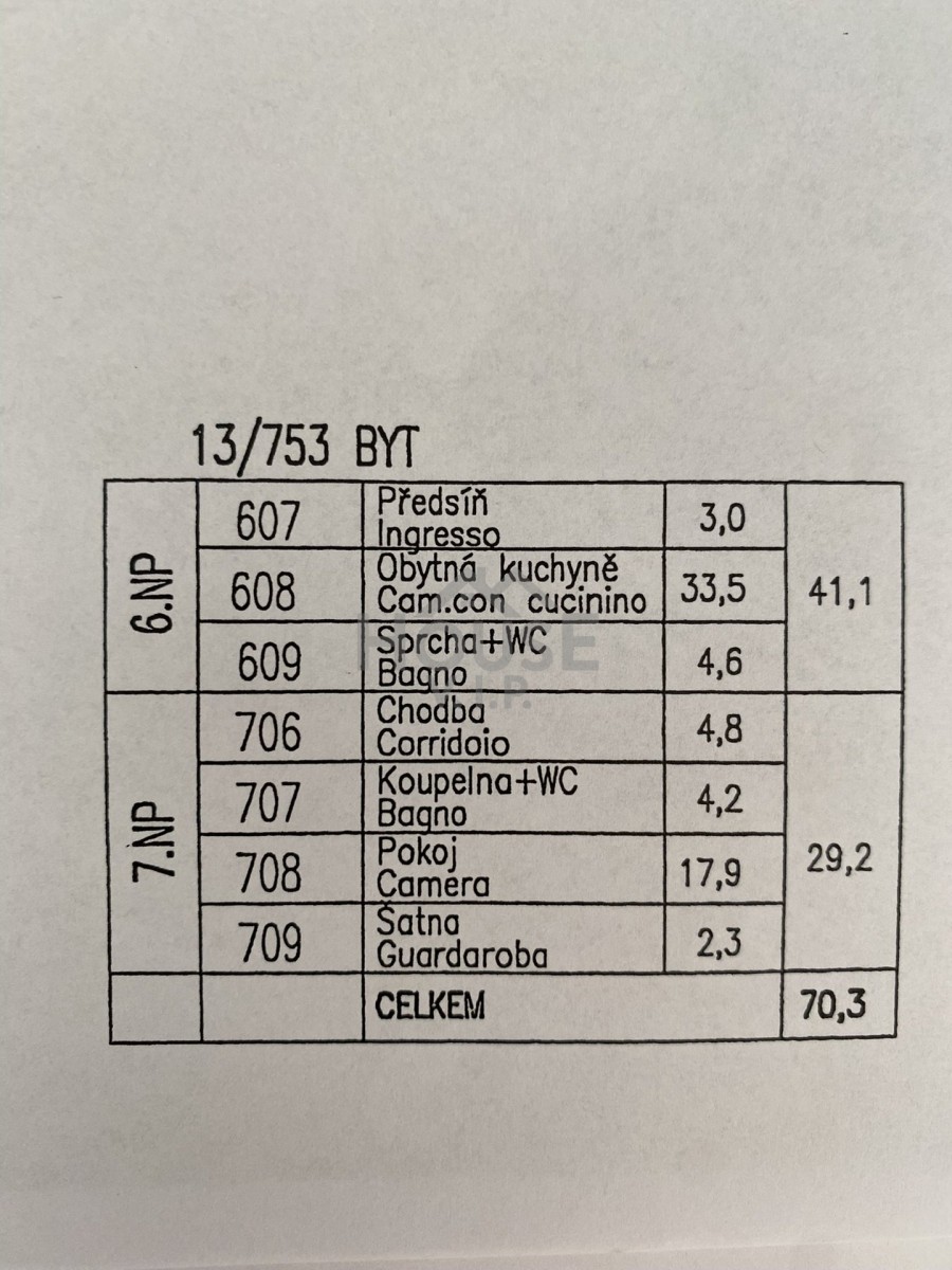 2+kk, 70 m2, cihlová, OV, 6. podlaží