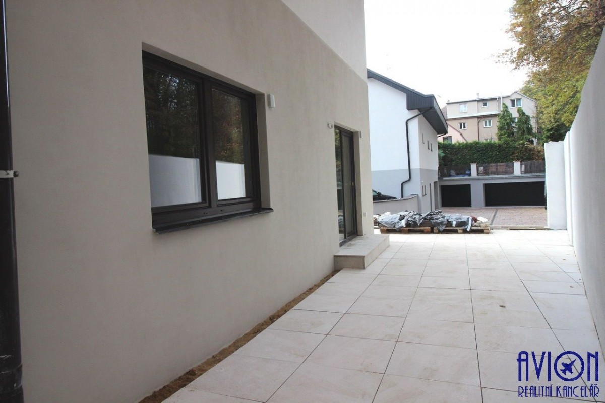 Pronájem úplně nového nadstandardního prostorného nezařízeného bytu 2+kk, 71 m2, s venkovní terasou 50 m2, parkovacím stáním, v Praze 5, v zeleni, na ...konci slepé ulice 5. máje, na rozhraní čtvrtí Motol a Stodůlky.