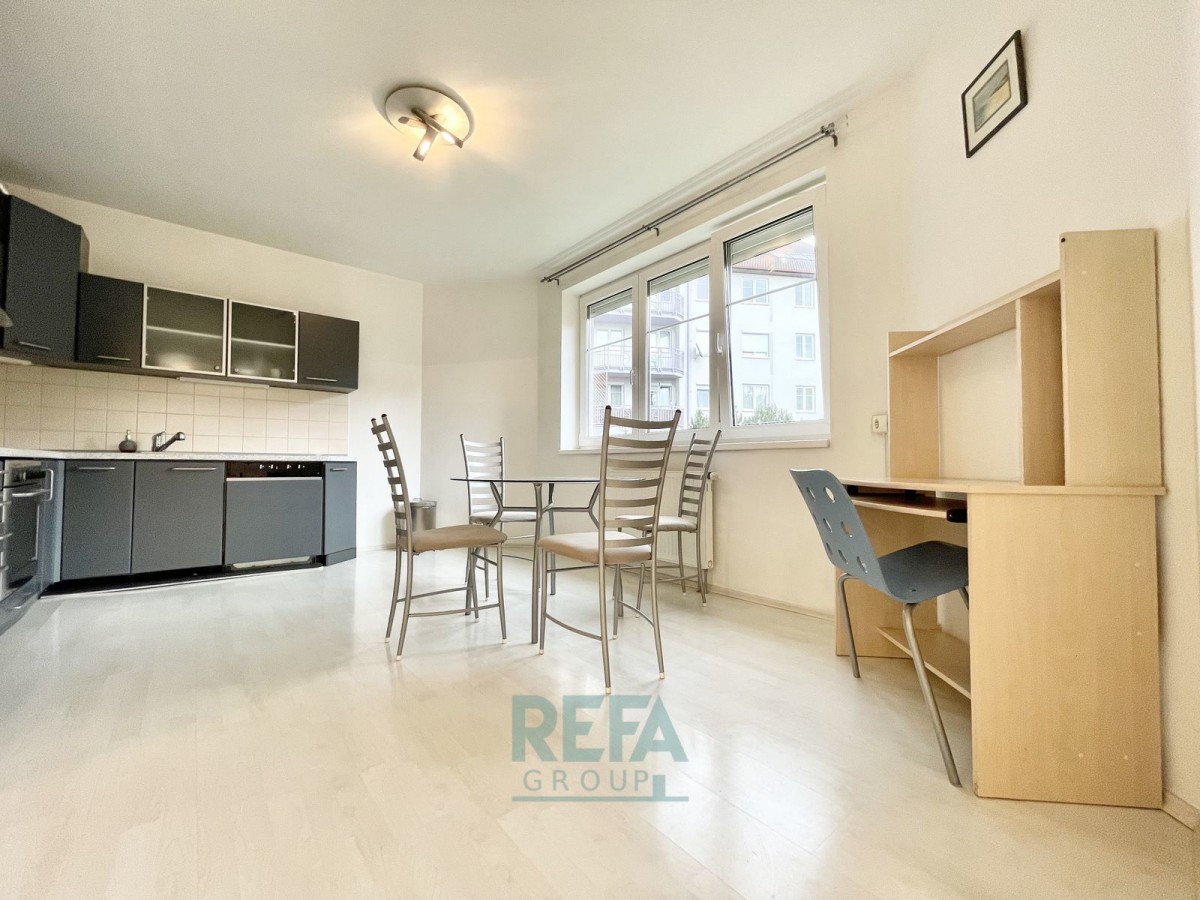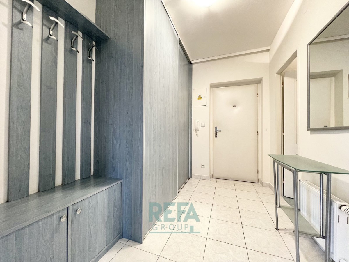 Byt se pronajímá částečně vybavený (kuchyňské spotřebiče, pračka se sušičkou, jídelní stůl a židle, PC stůl se židlí).