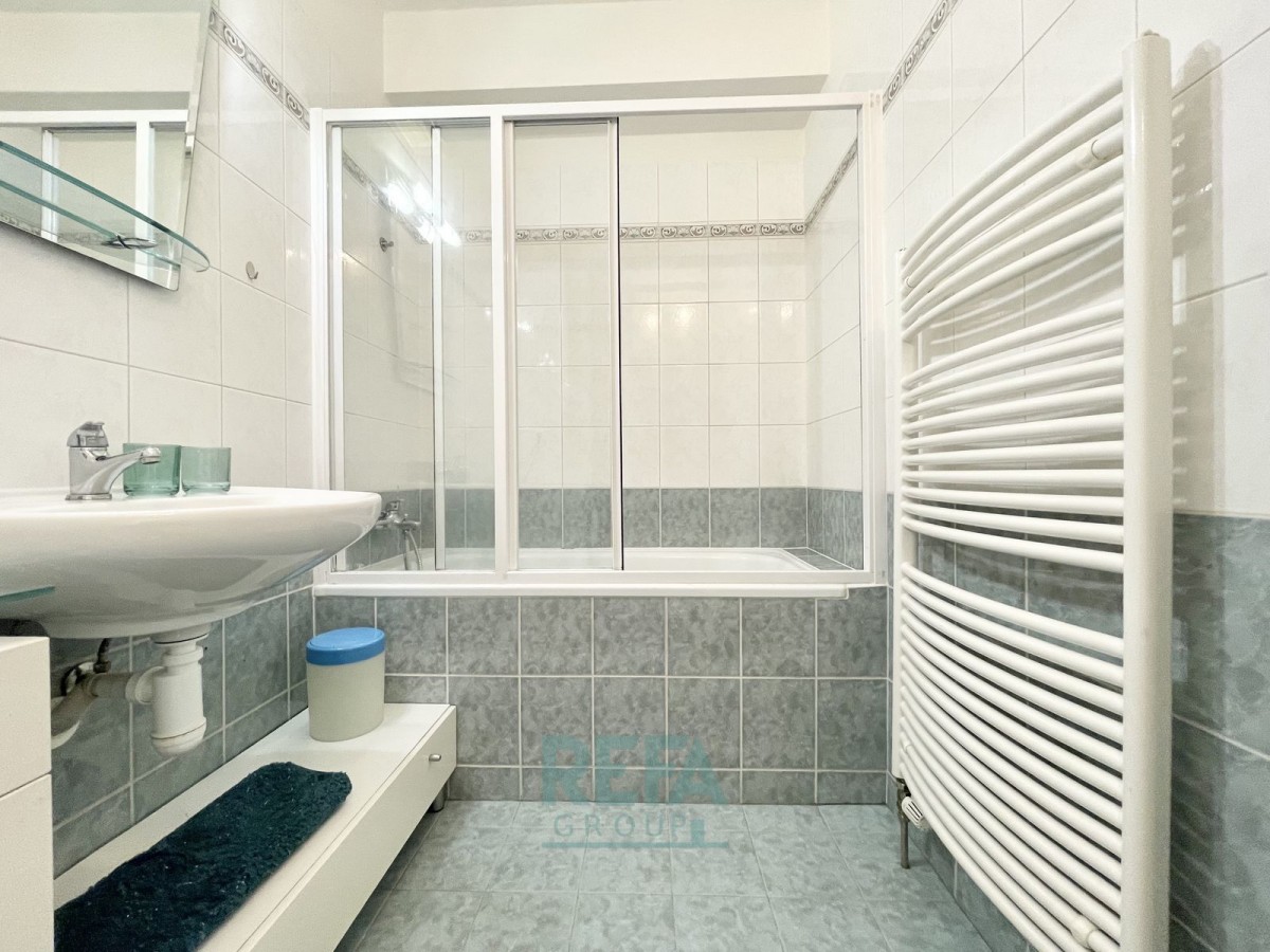 Kuchyňský kout s jídelním koutem - kuchyňská linka vybavená varnou deskou, digestoří, troubou a myčkou, koupelna s vanou a pračkou se sušičkou, oddělené sociální zařízení WC a předsíň, 2 pokoje a šatna.