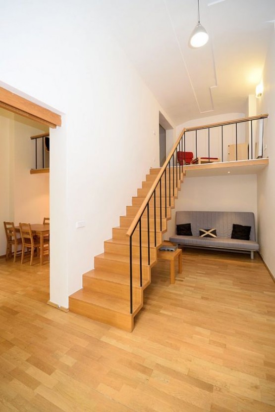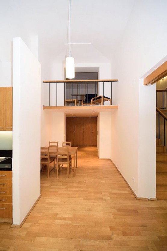 Plně zařízený byt 2+kk se nachází ve zvžšeném přízemí nově zrekonstruovaného domu na Praze 2 - Vinohradech. Přímý vstup do dvora domu, ložnice je na galerii. Kuchyně vybaven...a plynovým sporákem, troubou, myčka i mikrovlnka. V koupelně je vana a pračka. V bytě jsou dřevěné podlahy a dlažba. Velice klidná ulice s výborným dopravním spojením, stanice metra Náměstí Míru je pár minut volnou chůzí od domu. Vinohradská třída nabízí veškerou občanskou vybavenost - restaurace, bary, kavárny, obchody, galerie, kina. V blízkosti se také nachází oblíbený park Riegrovy sady. Velice pěkné bydlení blízko centra města.