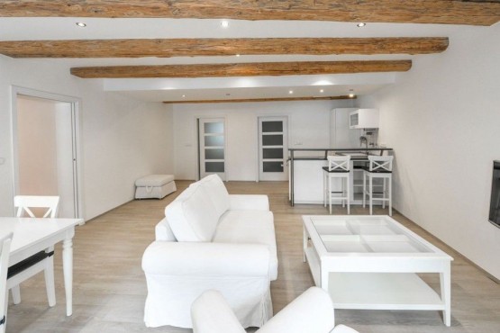 Kompletní vybavení zahrnuje - kuchyňská linka, všechny elektrospotřebiče, dřevěná podlaha v ložnici, vinylová podlaha s podlahovým vytápěním v ob. pokoji, dlažba, dřevěné stropní trámy, elektrické vytápění, pračka, sušička, myčka, TV.