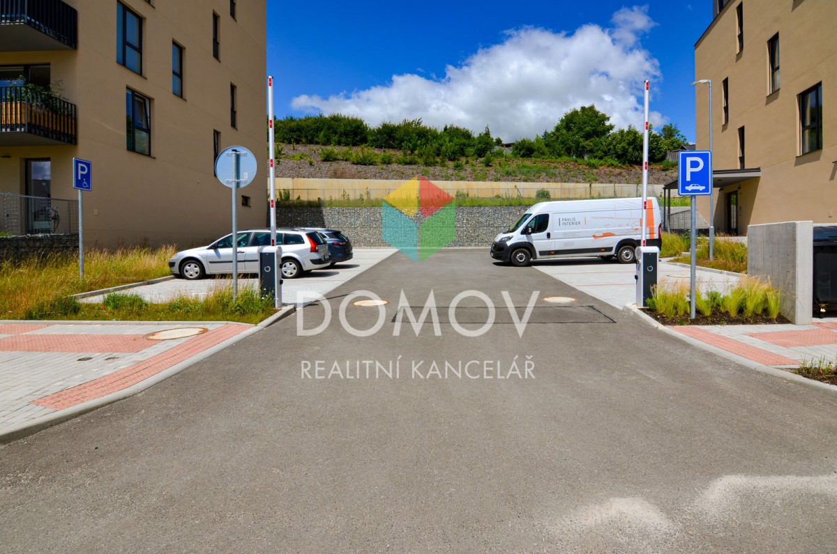 K bytu patří sklep a také jedno venkovní parkovací stání za závorou, na soukromém parkovišti, které patří k domu.