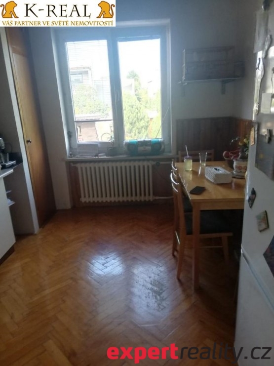 Jedná se o řadový rodinný dům, v jehož celém jednom patře se nachází předmětný byt. Patro první. Přístup chodbou po schodech do patra. ... Byt je hezký, v dobrém stavu, prostorný a slunný. S velkou halou, samostatnými vstupy do pokojů. Má samostatnou kuchyň. Koupelna s vanou. sociální zařízení WC zvlášť. Celková plocha bytu 100 m2. Byt je zařízený a vybavený částečně. V kuchyni kuchyňská linka a sporák. Byt má parketová podlaha a plastová okna. K bytu patří zasklená dvojlodžie. Dům je v dobrém stavu, cihlový a má supr izolaci. Byt je volný 1. 1. 2026.