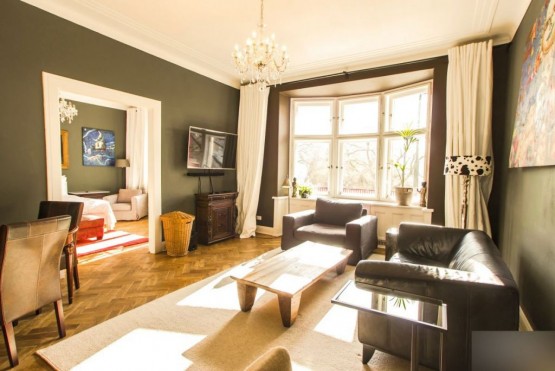 Luxusní, zařízený byt 3+1 (105m2) k pronájmu se nachází ve 2. patře cihlového domu včetně výtahu ve velmi žádané lokalitě, v ulici Na Hrobci, Praha 2 - Nové Město.