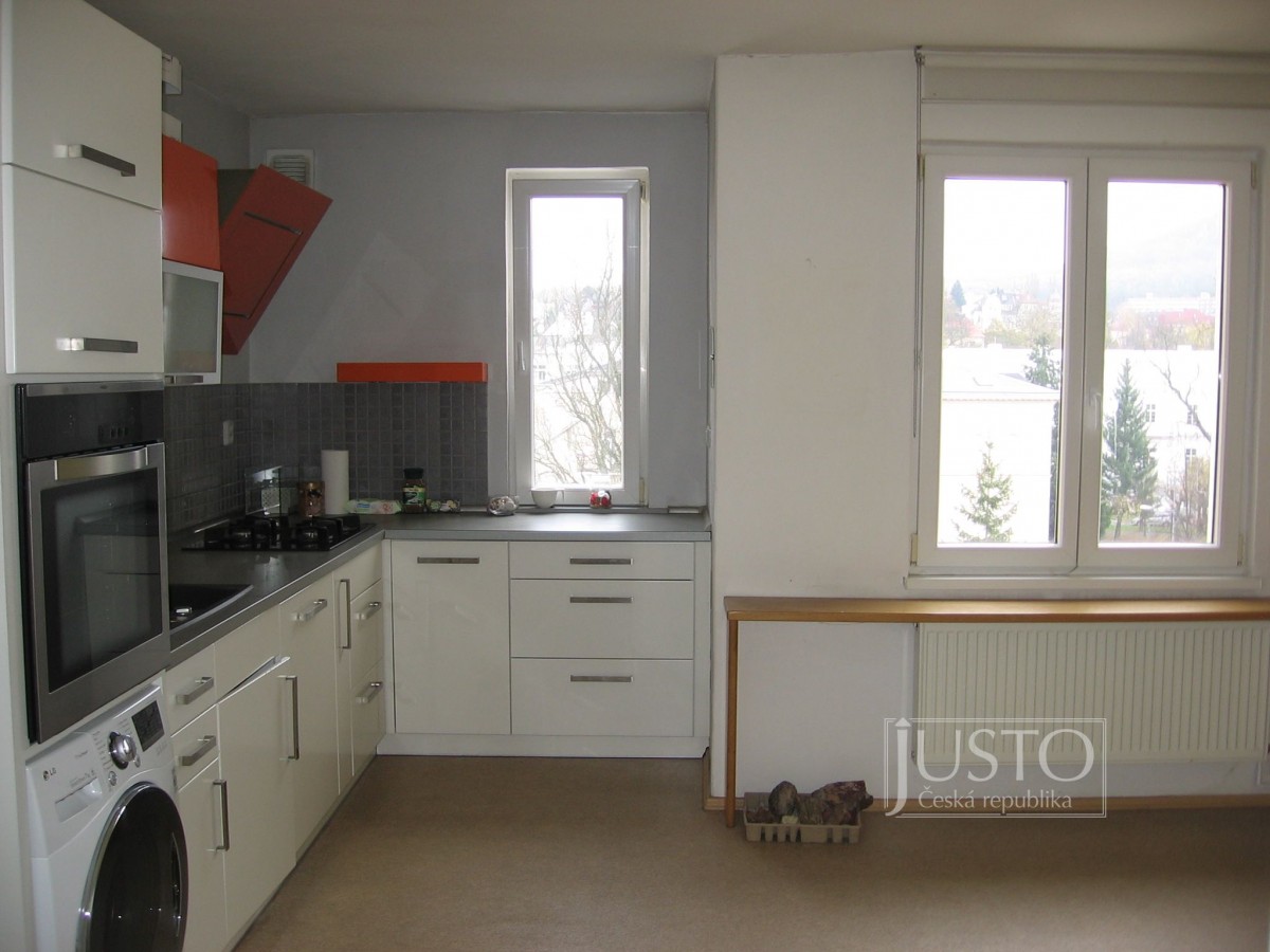 Nabízíme do pronájmu podkrovní byt 3+1 v ul. J. V. Sládka v Teplicích. Byt velký 105m² je po celkové rekonstrukci. V kuchyni je na míru kuchyňská linka včetně myčky a vestavěné tr...ouby. Na podlaze je položeno lino. V celém bytě jsou plastová nebo střešní okna a v pokojích je položena plovoucí podlaha. V koupelně je umyvadlo a vana. sociální zařízení WC je samostatné v předsíni, která je velice prostorná. Topení a teplou vodu zajišťuje vlastní plynový kotel. Byt bude volný nejdříve od 1. 2. 2020.