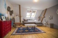 Nabízíme prostorný byt 3+1 s úžasnou atmosférou, který se nachází v pátém patře domu včetně výtahu v ulici Tusarova, Praha 7 - Holešovice. Byt má dvě samostatné ložnice, obývací... pokoj, kuchyň, koupelnu s rohovou vanou, komoru a toaletu zvlášť. Je plně zařízený nábytkem i nejmenšími detaily. Kuchyňská linka je vybavená spotřebiči ( lednice s mrazákem, elektrická trouba s indukční varnou deskou, rychlovarná konvice, nádobí. . . . . . . ) V komoře je pračka, sušička a vlastní plynový kotel. Na podlaze jsou parketová podlaha. Internetové připojení UPC a O2. Dům se nachází v oblasti s plnou občanskou vybaveností - obchody, restaurace, kavárny, dětské hřiště a další. Kousek od domu se nachází zastávka tramvaje - výborné spojení do centra. 10 minut pěšky na stanici metra C - Vltavská.