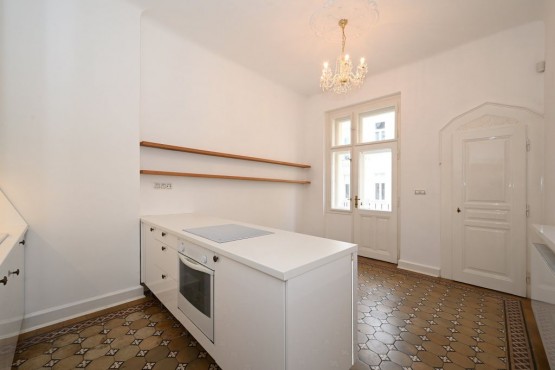 Zrekonstruovaný, 2 - ložnicový, nezařízený byt k pronájmu, 3+1, 115m2, s malým balkonem, situovaný ve 4. patře kompletně zrenovovaného secesního domu BEZ VÝTAHU. Bud...ova se nachází u prestižní Pařížské ulice, pouze několik minut chůze na Staroměstské náměstí, k nábřeží Vltavy, zastávce tramvaje a stanici metra Staroměstská, blízko obchodů, kaváren a restaurací. Dispozice bytu: velká centrální vstupní hala, obývací pokoj, plně vybavená kuchyň s jídelní částí a spotřebiči (sklokeramická varná deska, trouba, myčka a lednice s mrazákem) a vstupem na balkon, spíž, dvě ložnice, šatna s velkou skříní, koupelna (s vanou a umyvadlem) a samostatné sociální zařízení WC. Na podlaze jsou dubové parketová podlaha a dlažba. Na stropech jsou zrestaurované plastické zlacené štukatury a ve dveřích jsou ornamentální skla. K dispozici je satelitní přípojka (4 satelitní antény), internetové připojení, alarm, plynový kotel, podlahové topení v koupelně. V budově je nainstalován kamerový systém. Kauce: 2 měsíční nájmy. Nájemné: 42. 000, - Kč + služby 1. 000, - Kč/osoba/měsíc + poplatky (elektřina a plyn budou přeregistrovány na nájemce) + provize RK. Pouze dlouhodobý pronájem. Nelze Airbnb nebo krátkodobé podpronájmy.